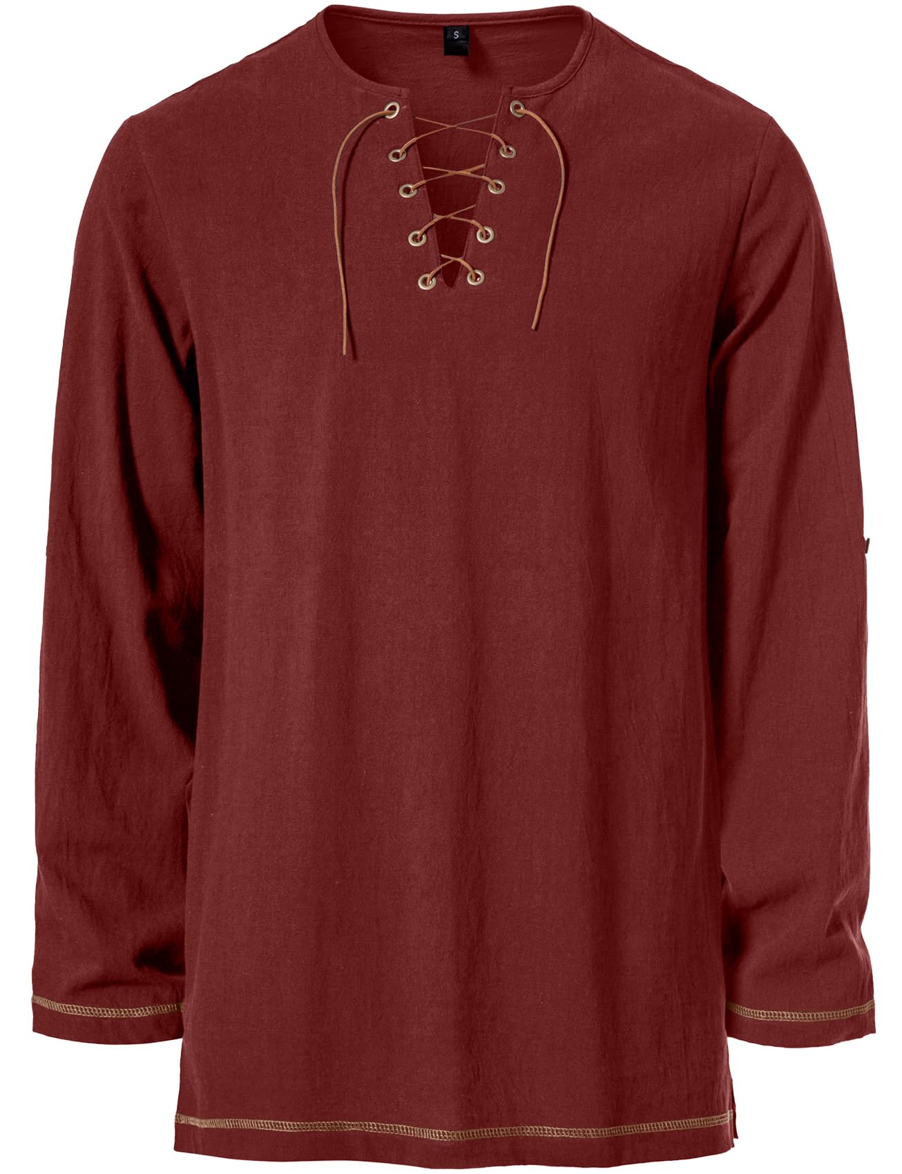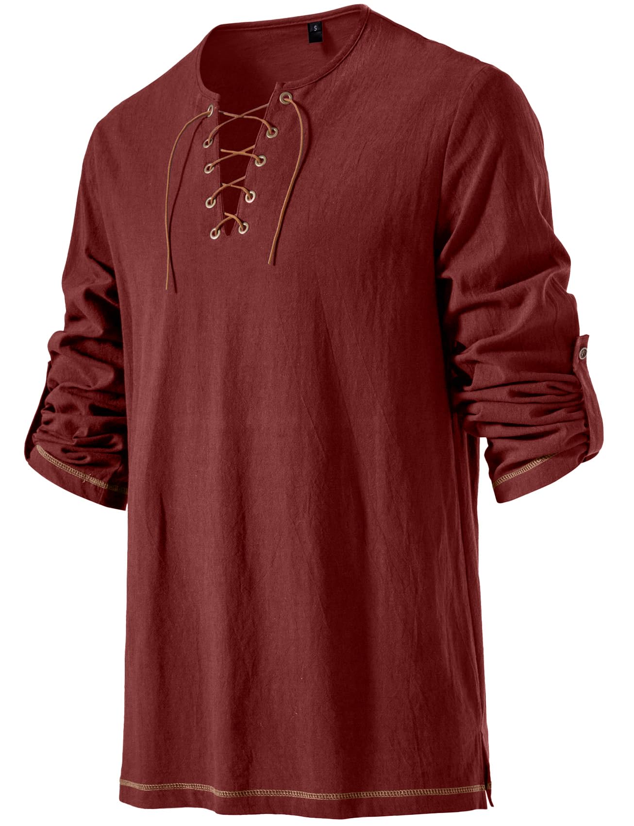 Design Concept: Mid-long tunic top / Contrast color drawstring design / Bronze buttonholes with retro buttons / Regular fit / V neck / Side slit / Long sleeve / Rolled sleeve