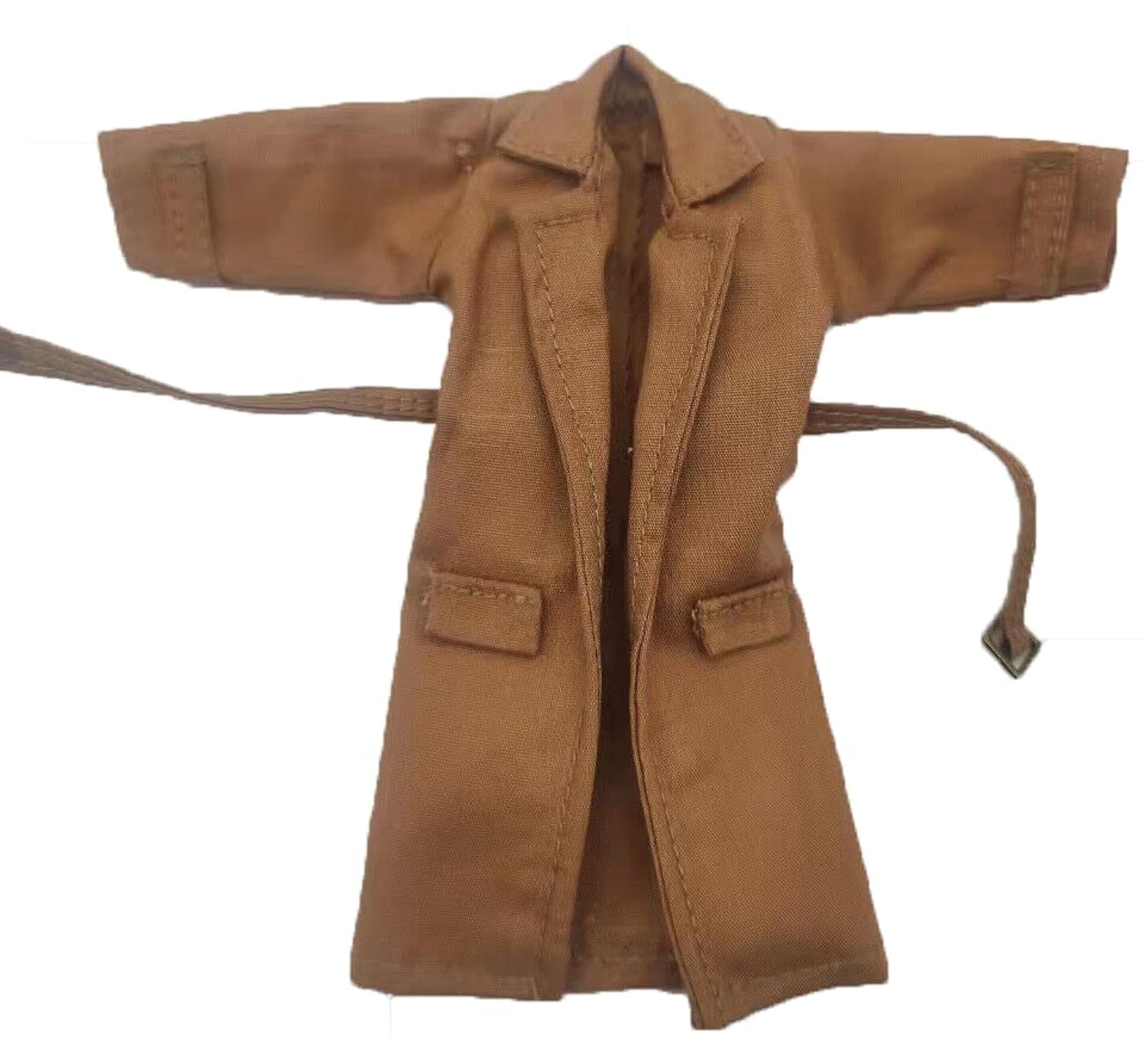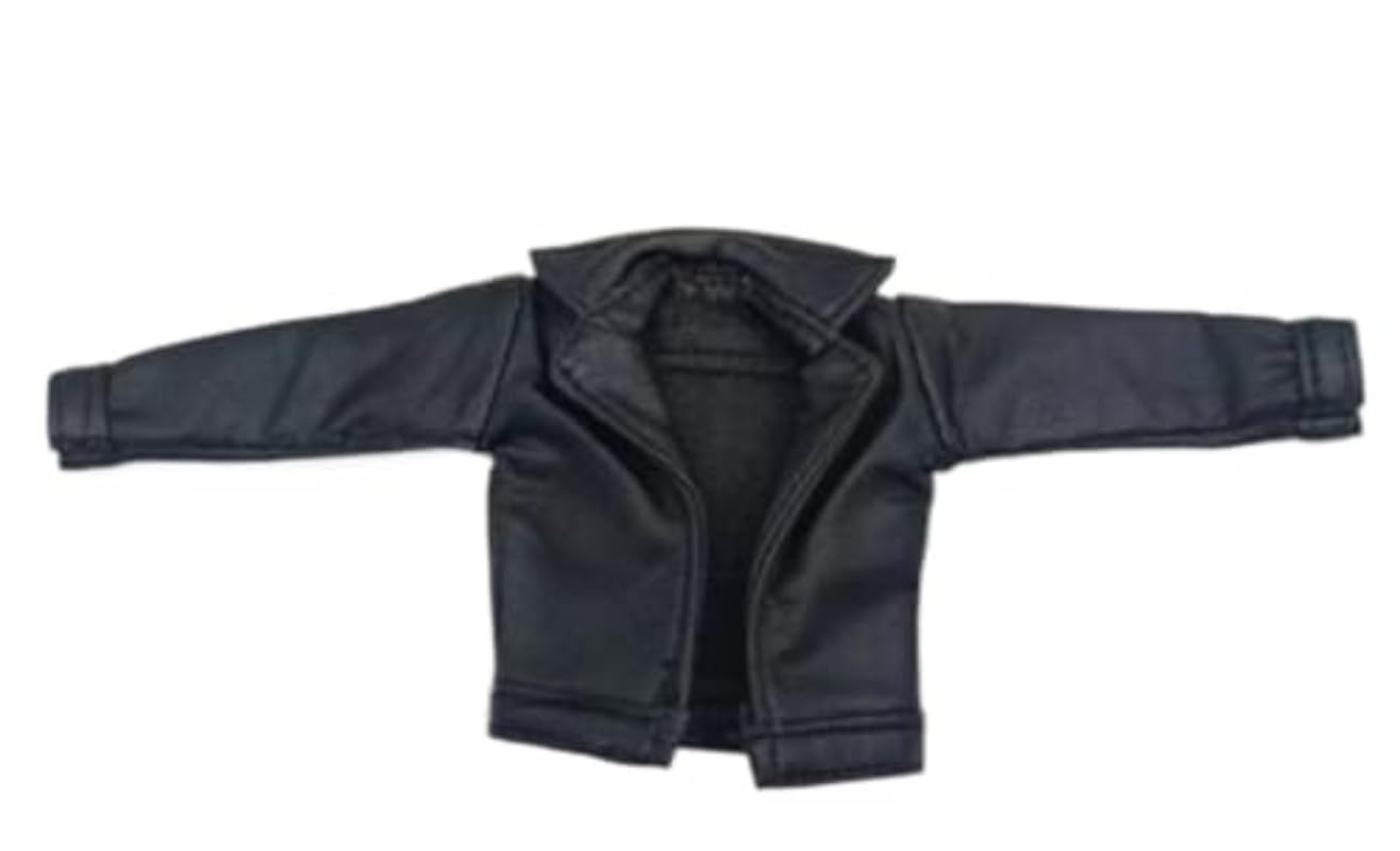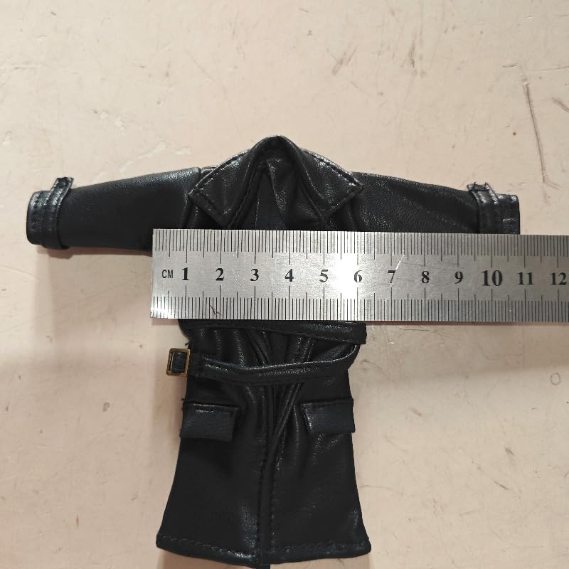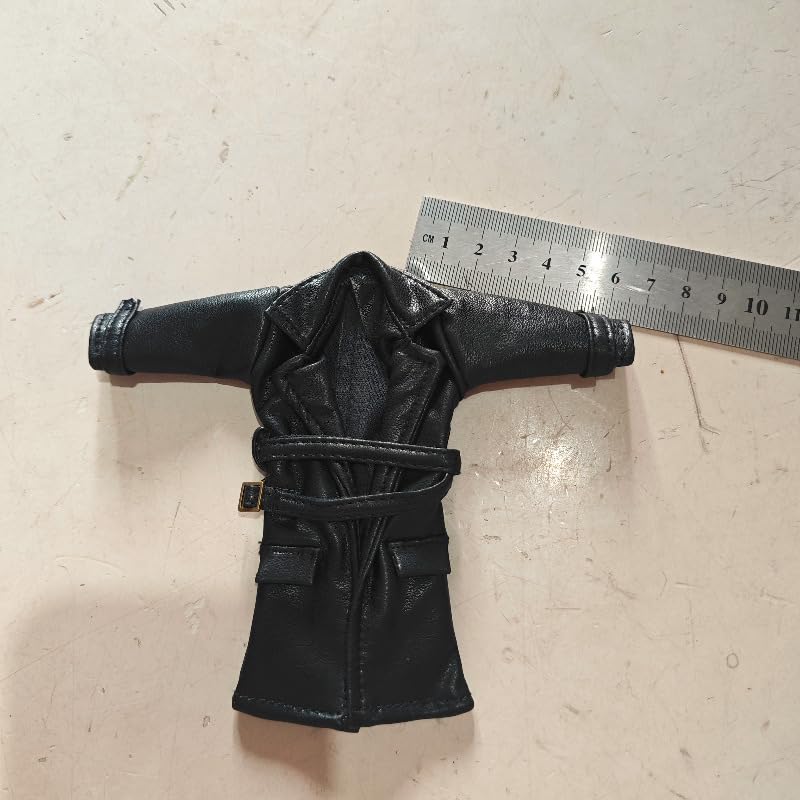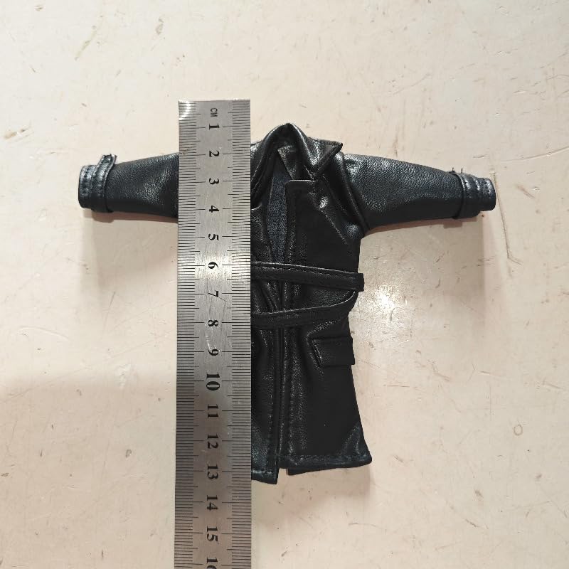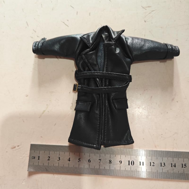 1/12 Scale Sodier Wired Black Faux Leather Trench Coat Model for 6" Figure