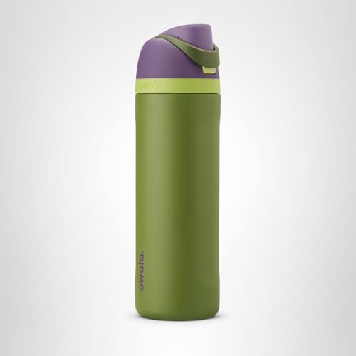 The Owala FreeSip Insulated Stainless-Steel Water Bottle with Locking Push-Button Lid easily tackles every thirst. With a built-in, easy-clean straw and a wide-mouth opening, the FreeSip reusable bottle is designed for drinking two different ways: sipping upright through the straw or tilting back to swig from the wide-mouth spout opening. Add in a push-to-open lid and playful colors, and staying hydrated has never been simpler—or more fun. Additional features include double-wall insulated stainless steel that keeps drinks cold up to 24 hours, a carry loop that doubles as a lock, a cup holder-friendly base, and a wide opening for easy cleaning and adding ice. The Owala FreeSip Insulated Stainless-Steel Water Bottle with Locking Push-Button Lid is available in three sizes: 24-Ounce, 32-Ounce, and 40-Ounce. Lid is dishwasher safe; hand wash cup. Not for use with hot liquids. Manufacturer’s limited lifetime warranty.