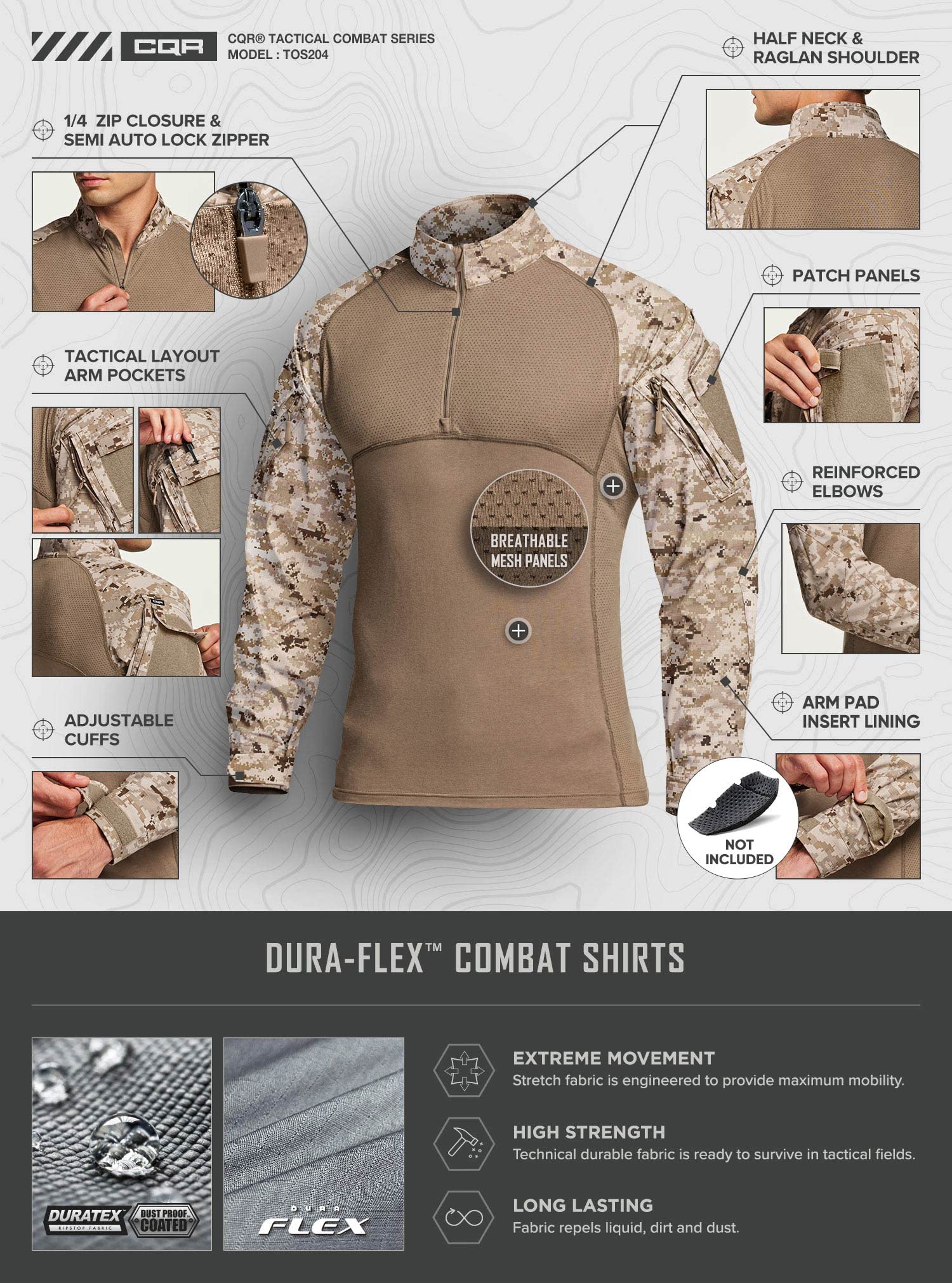 CQR Men's 1/4 Zip Combat Shirt Series inspired by traditional duty uniform for modern-day tactical use.
