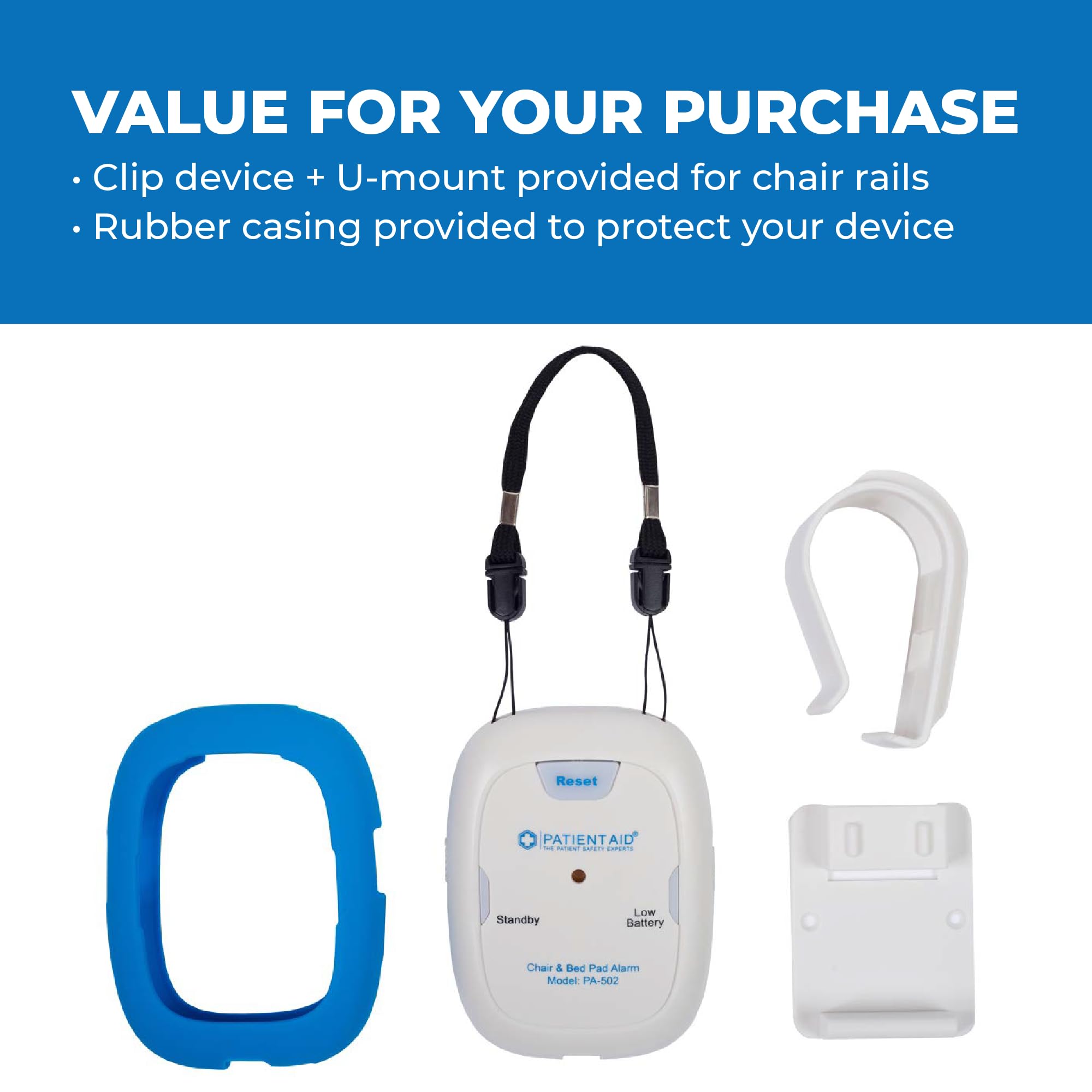 Install Quick. Mount the bed alarm device beyond patient's reach. Place bed pad beneath patient's buttocks or shoulders. The motion sensor alarm system will alert you when the patient tries to stand. Note: It cannot be used on a patient with a pacemaker/defibrillator