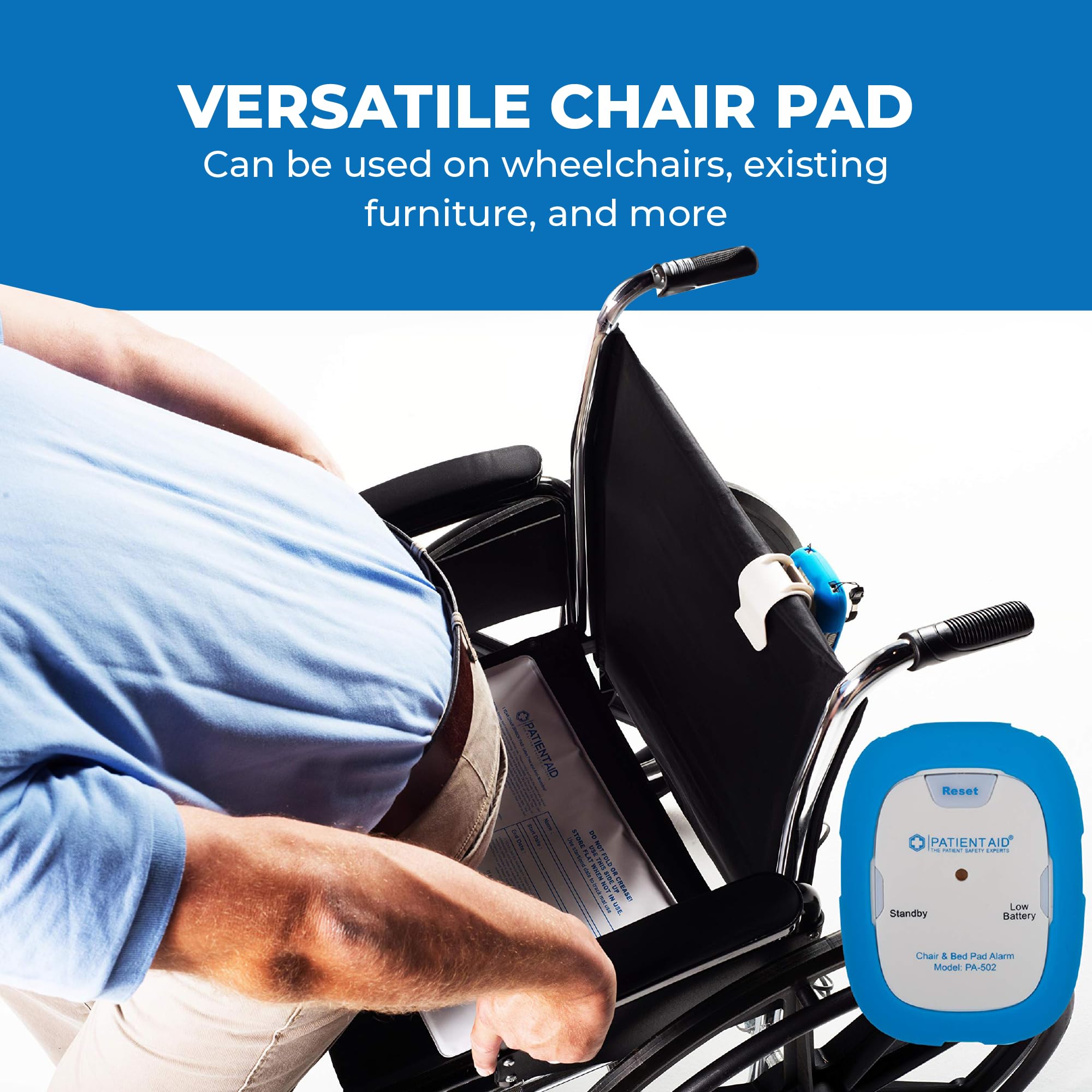 Use Safely. A removable rubber casing protects our alarm device. Made with advanced vinyl, our slim 10" x 15" chair pad is tear-and-water resistant. It is latex-free, foldable, and easy to wipe down.