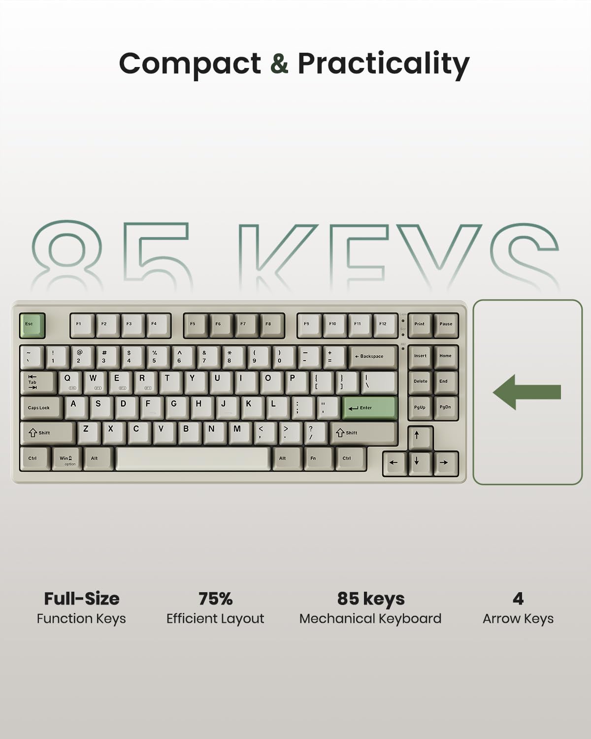 【75% Keyboard Compact Layout】This wired gaming keyboard features an 85-key layout that saves desktop space while retaining essential arrow keys, perfect for anyone seeking to improve your typing and gaming setup .The KN85 series offer a range of color options, including a retro industrial gray that complements various desk settings.it seems to bring you back to the 80s