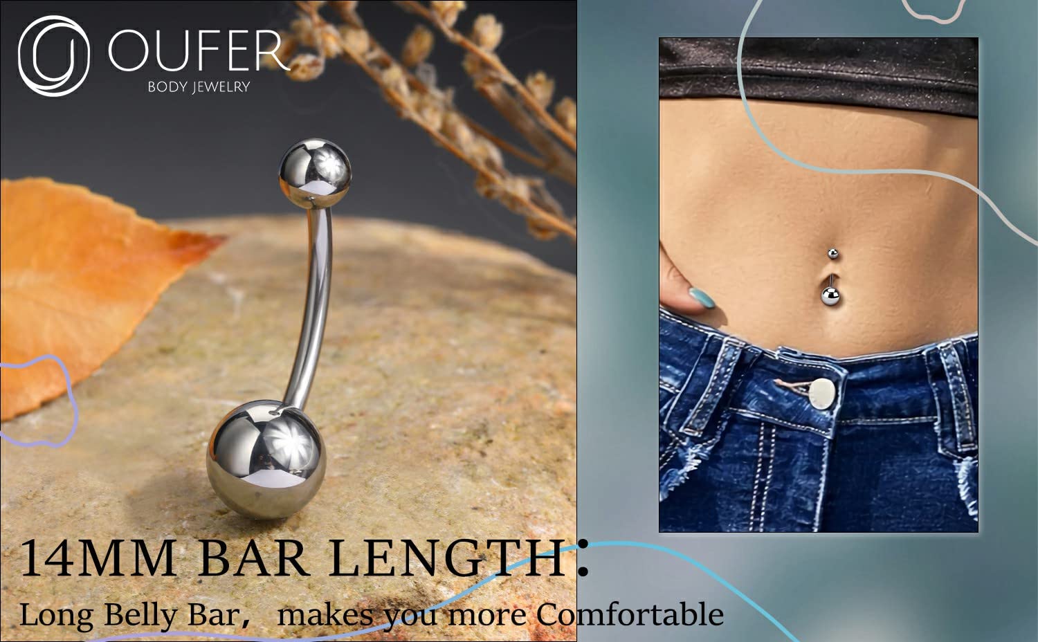 ❤NO irritations❤: G23 Titanium Belly Piercing Jewelry, Hypoallergenic, Nickel & Lead-Free, Can Be Worn Even on New Piercings, Good for the Sensitive Skin, Long Use Time