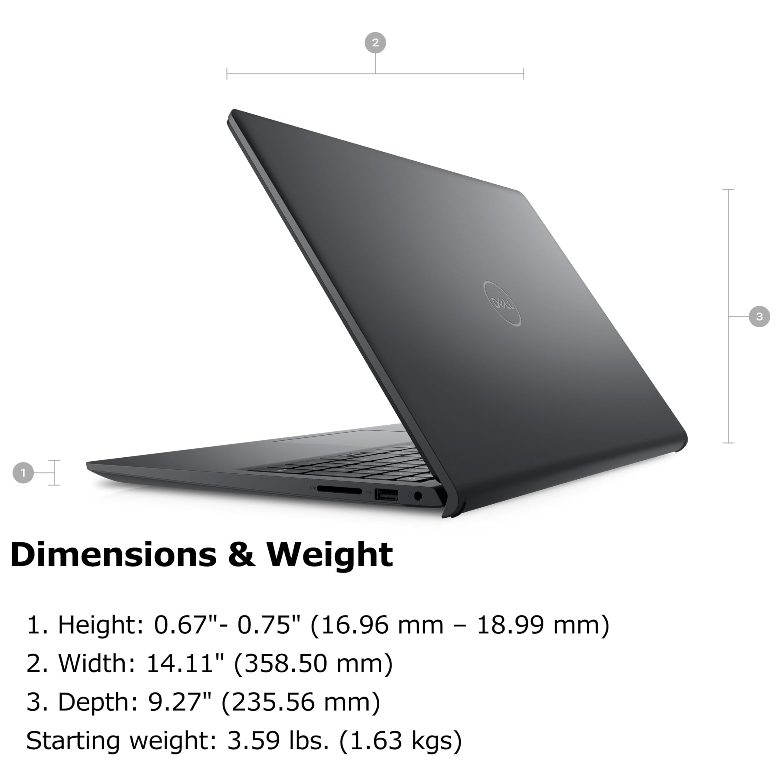 Operating System: Windows 11 Professional 64, English. Carbon Black, English International, non-backlit keyboard, with 10-key numeric keypad, 99 keys. This slim laptop balances style and functionality, making it an ideal choice for professionals on the go. Its lightweight build ensures that you can take your dell laptop to meetings or classes without any hassle. Bundled with Wendbo Cable.