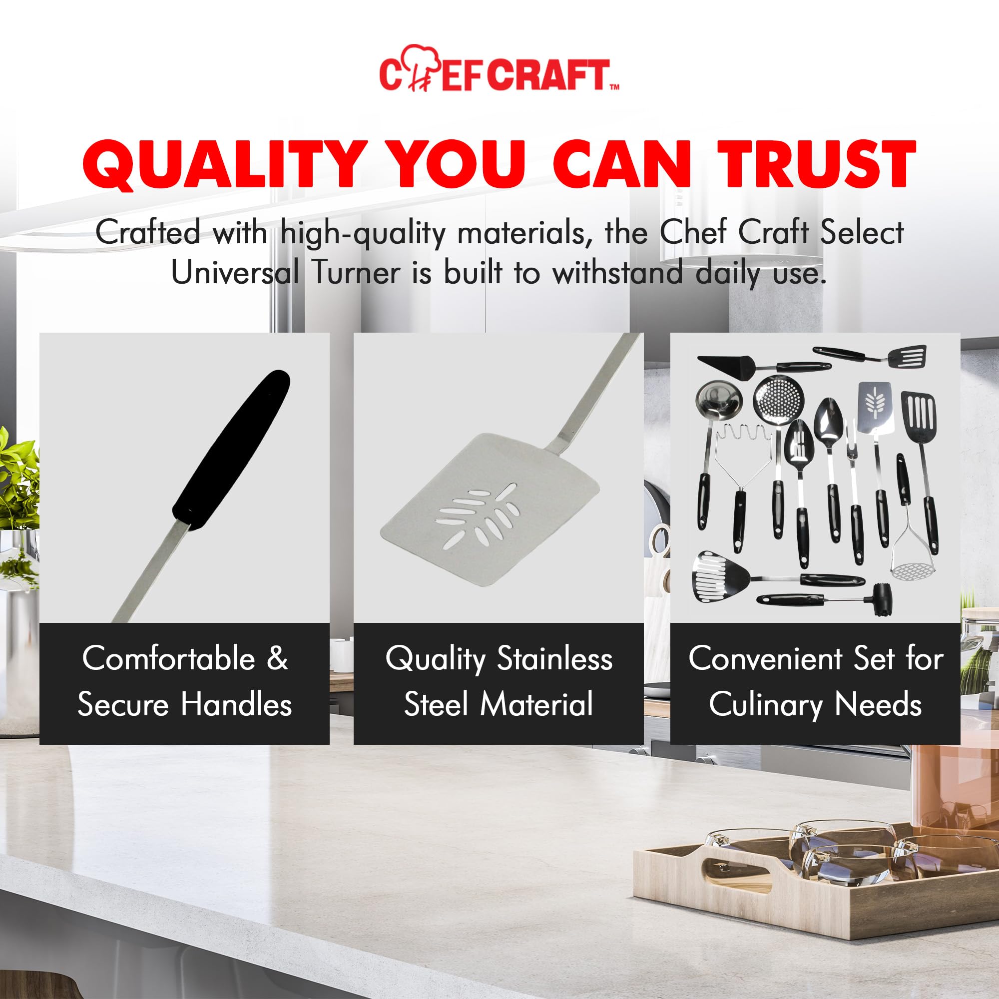 An essential in any kitchen, this stainless steel turner offers an ergonomic plastic handle and a stainless steel construction which resists rust. It is perfect to use with stainless steel and cast iron, or any pan that does not have a non-stick coating. Reach for this Select Spatula/Turner every time that you are cooking with stainless steel and you won't go wrong!