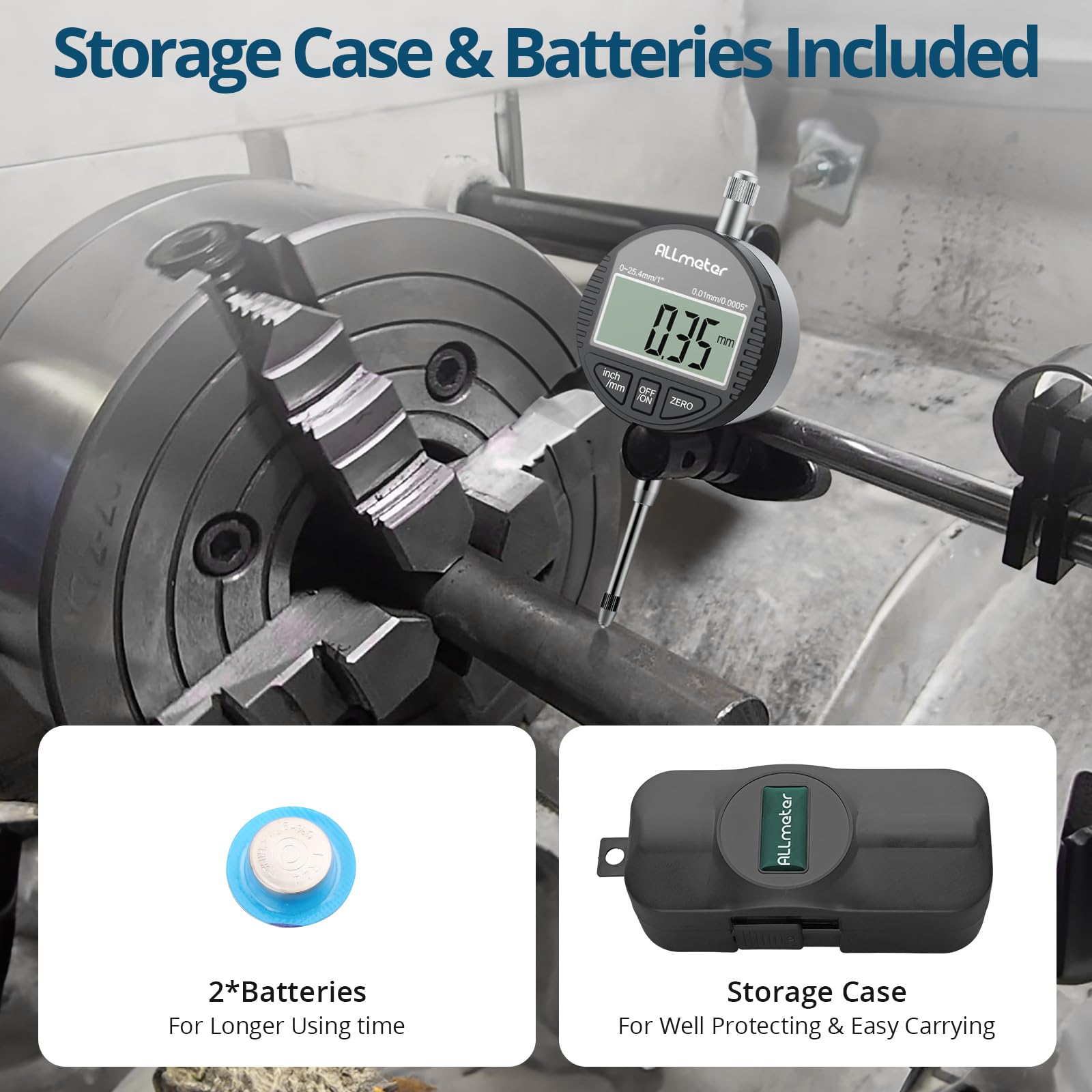 High Precision Measurement:This digital dial indicator offers a high resolution of 0.01mm (0.0005") with a 0-25.4mm (0-1") measuring range, ensuring accurate and reliable measurements for mechanical and industrial applications