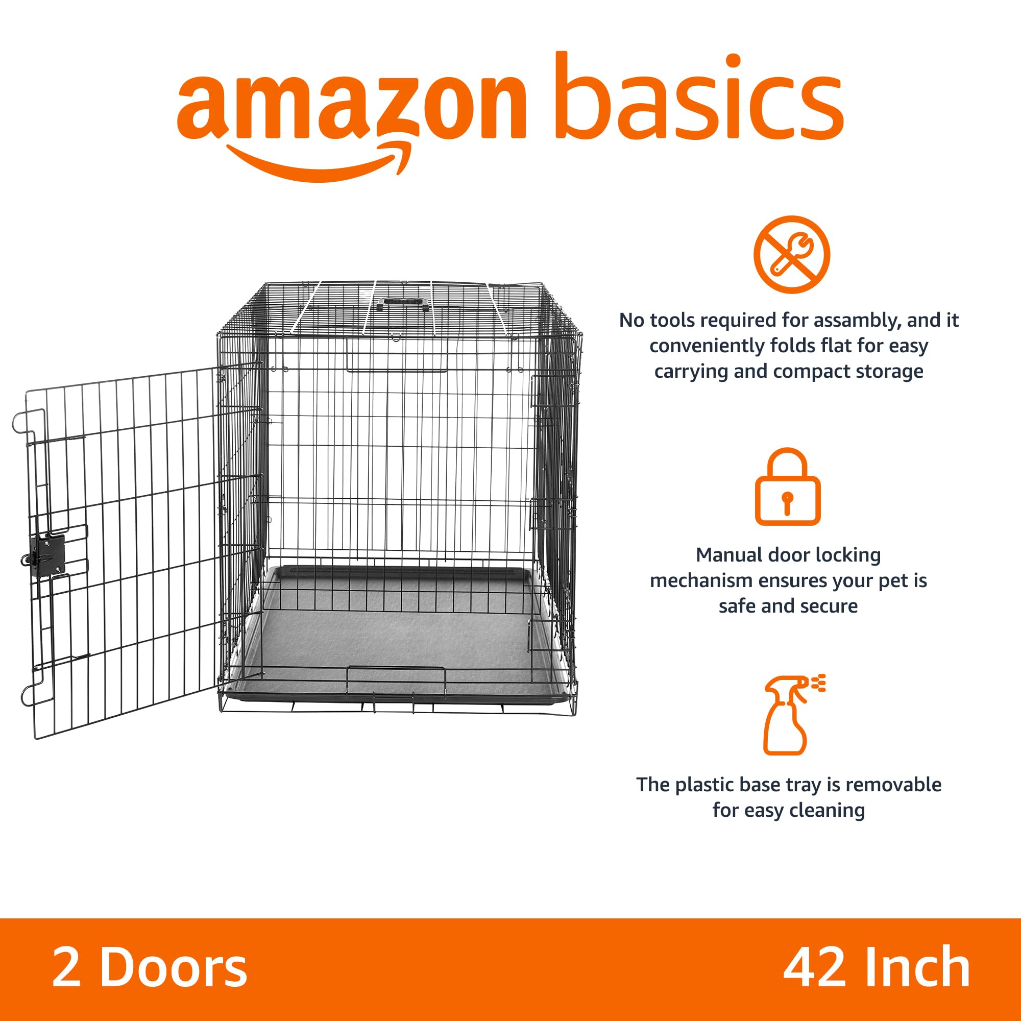 Amazon Basics Foldable Metal Dog Crate, Double Door, 42 Inch
