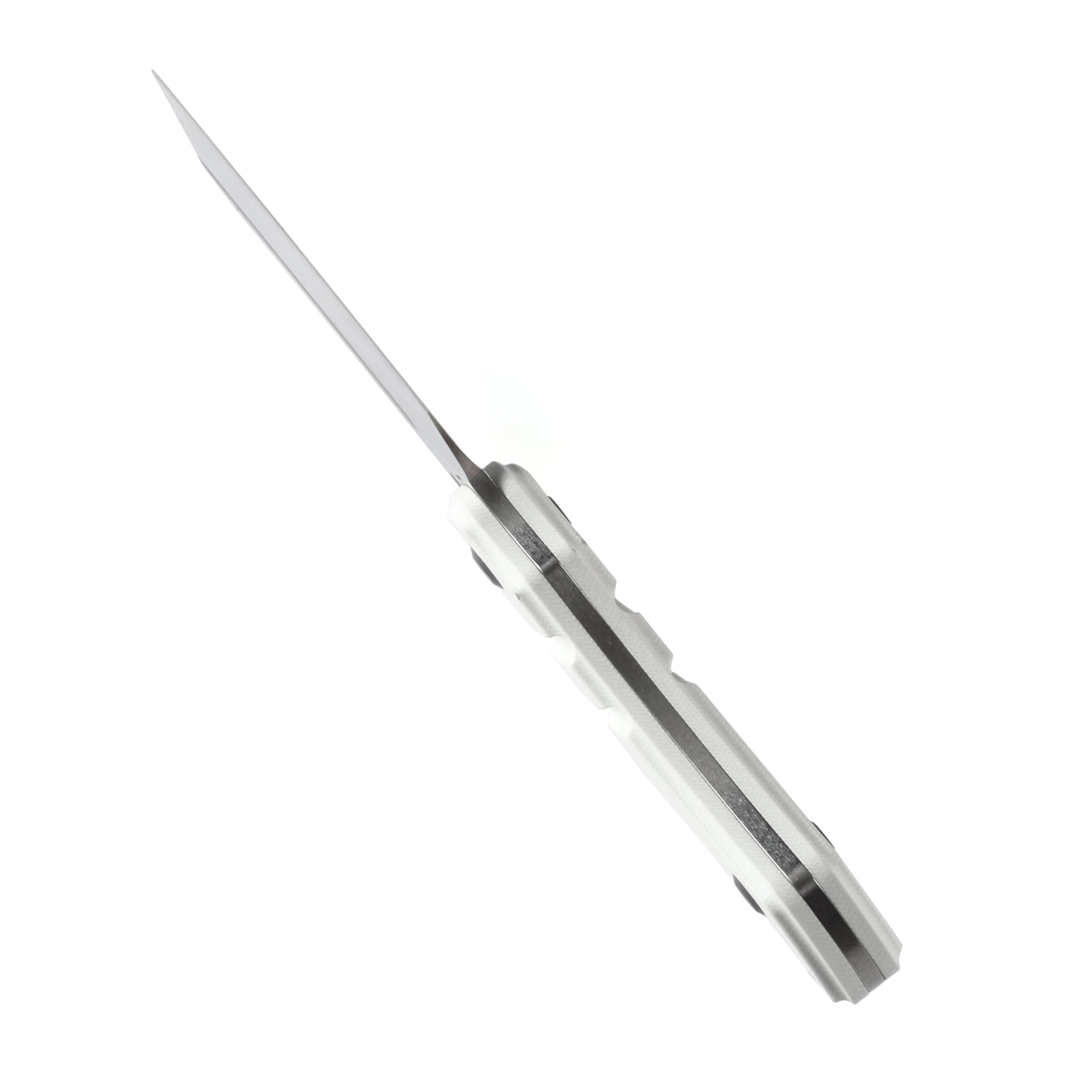 Ergonomic Handle Grip: White G10 handle is chamfered with no hotspots for a secure and comfortable grip