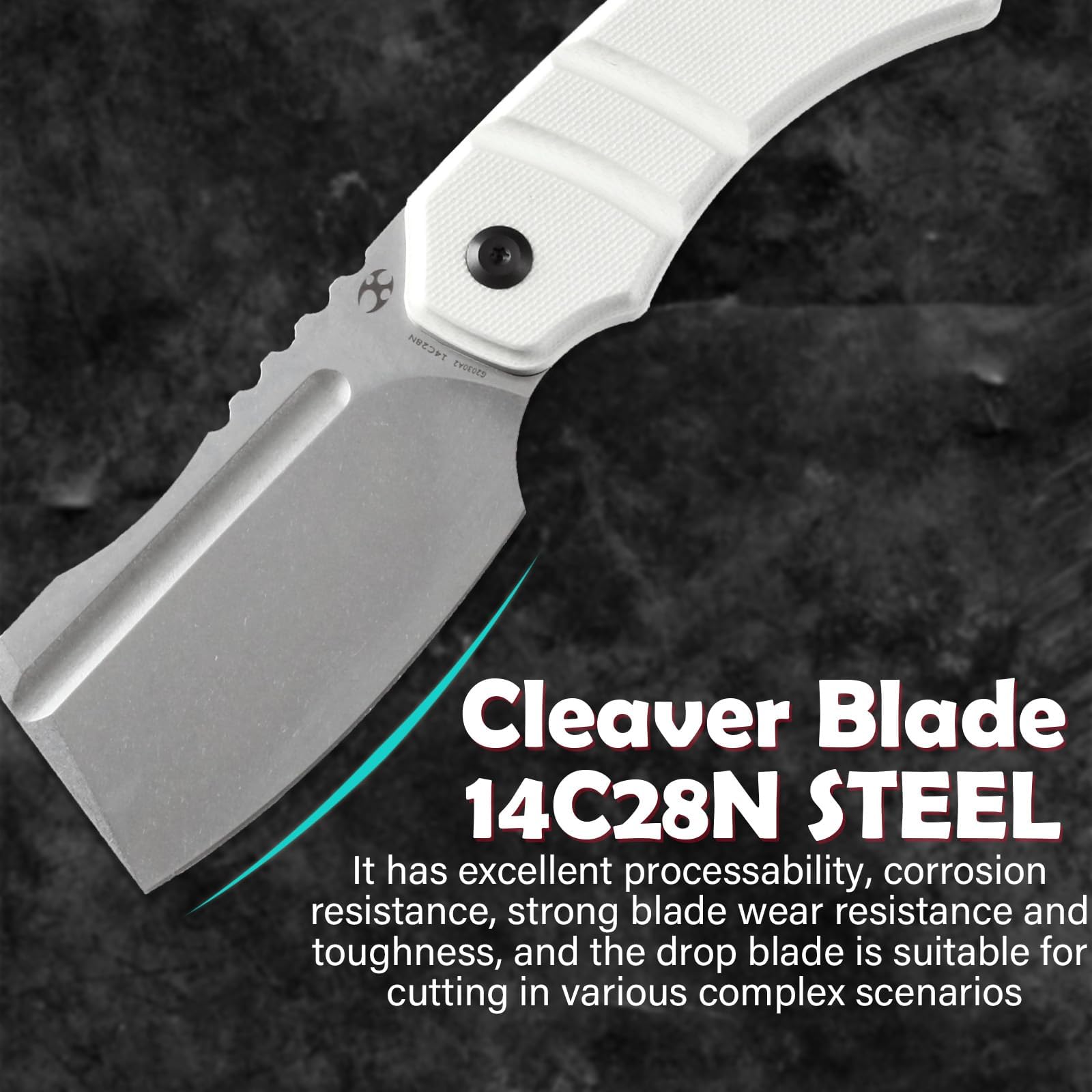 Sharp Fixed-blade Knife: 2.9'' fullered cleaver-style Crucible Stonewashed 14C28N blade with hardness 58-60 RC, provides excellent cutting performance and edge retention