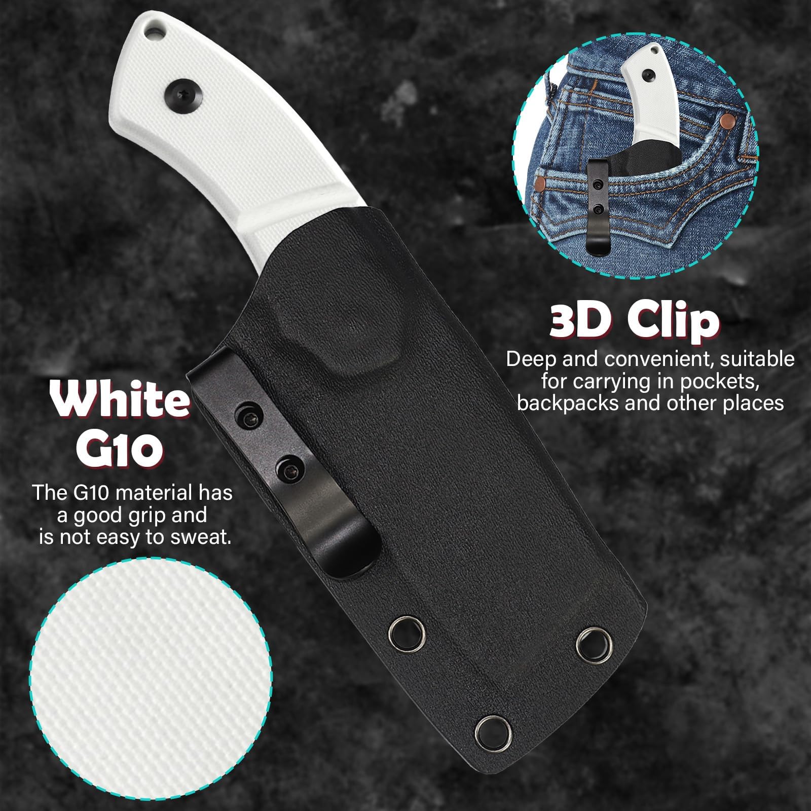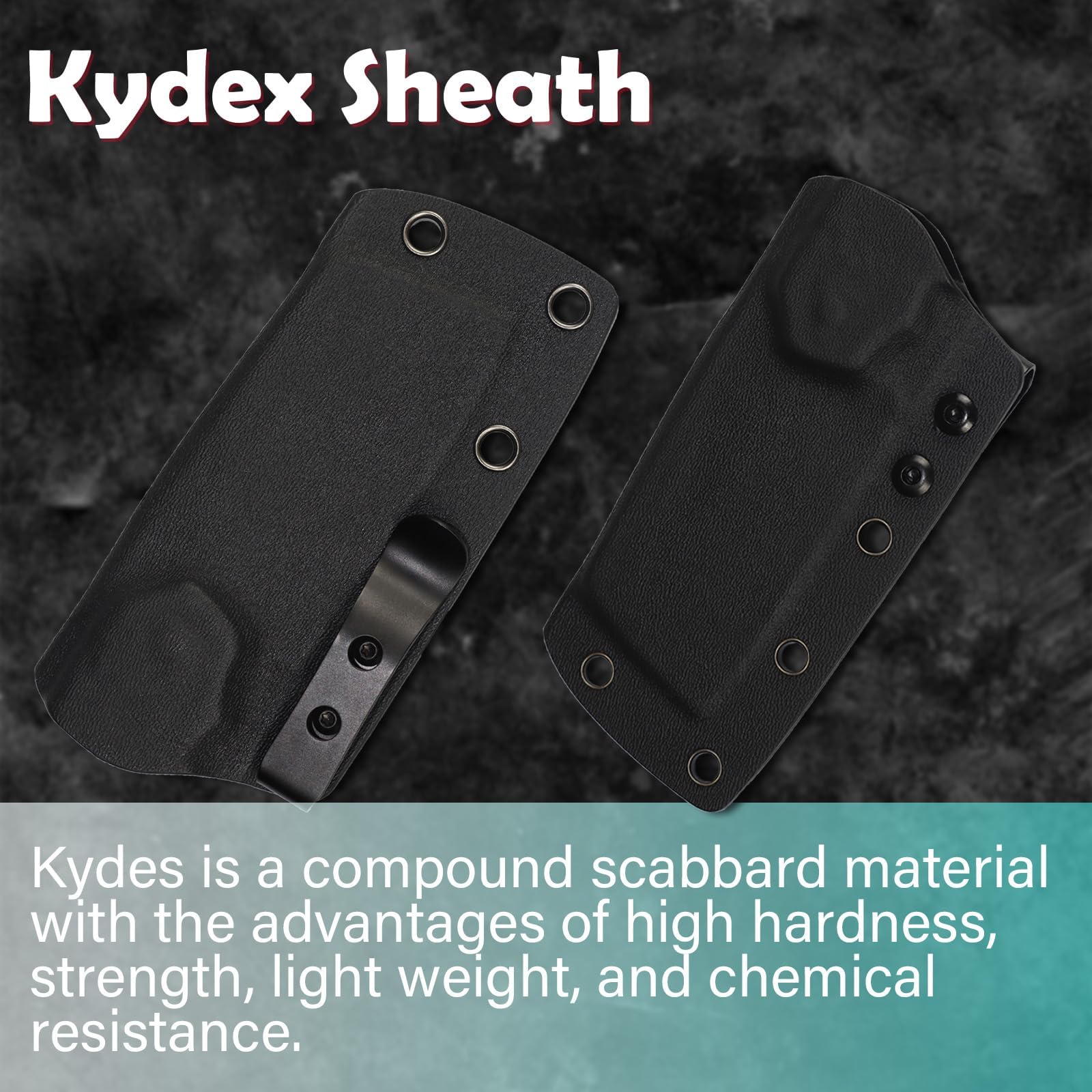 Adjustable Direction Kydex Sheath: Easy to carry, the included kydex sheath ensures secure storage and easy carrying of the fixed blade while increasing safety