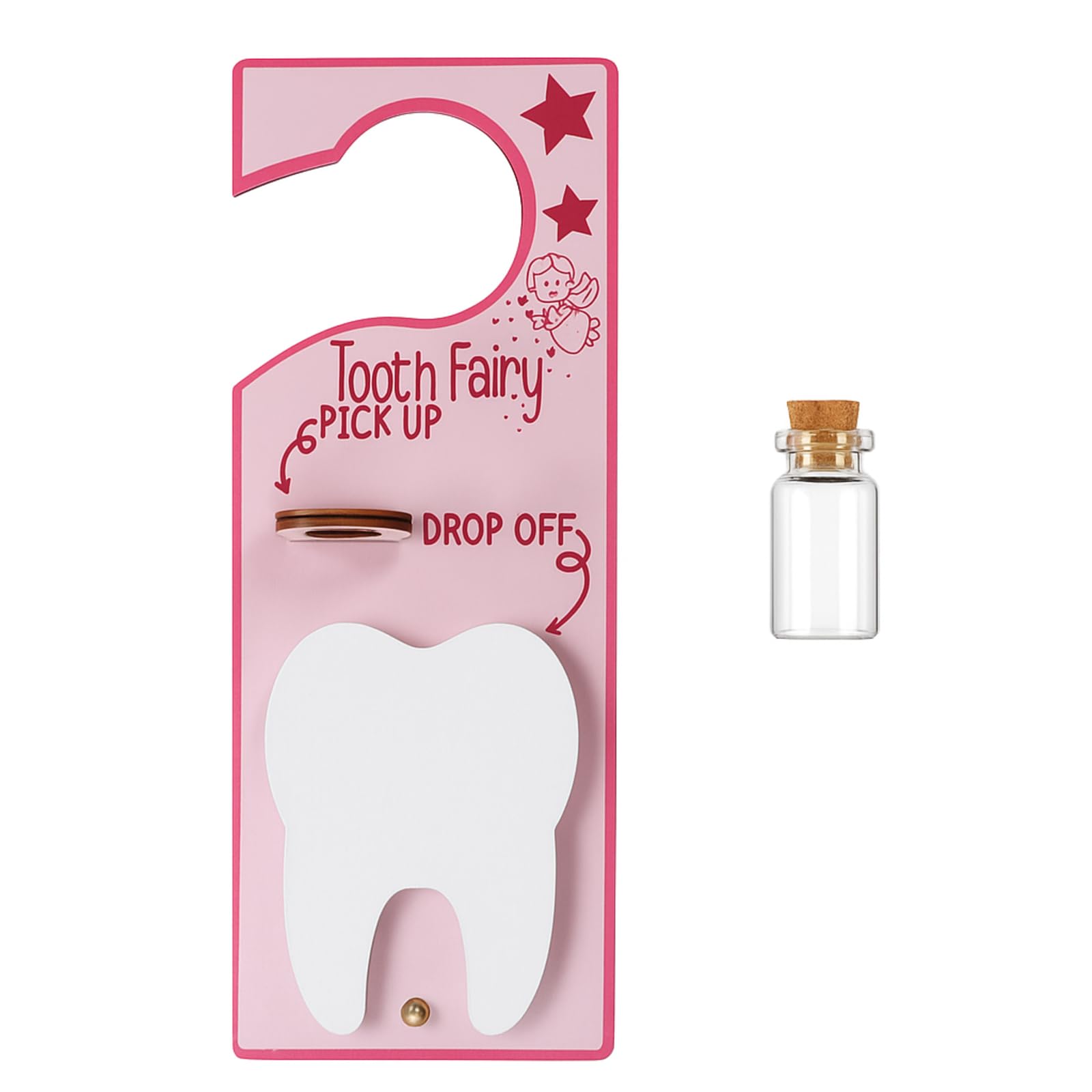 Durable Material Construction: this tooth fairy door hanger is made from wood material, offering durability and strength; Offering an exquisite feel while ensuring the safe storage of your child's precious teeth; The bottle is made from glass and features a wooden cork, contributing to the set's overall classic design