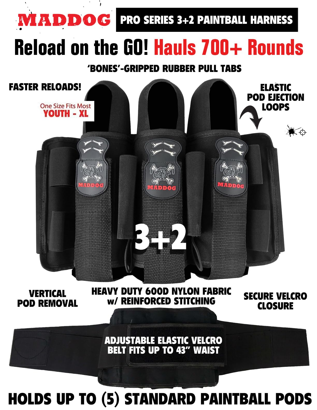 ENTRY LEVEL PAINTBALLERS to TOURNAMENT PROS... We've Got You Covered! Pro Harnesses HAUL More Paint Than The Competition Can Handle - Reload Round After Round with Maddog!