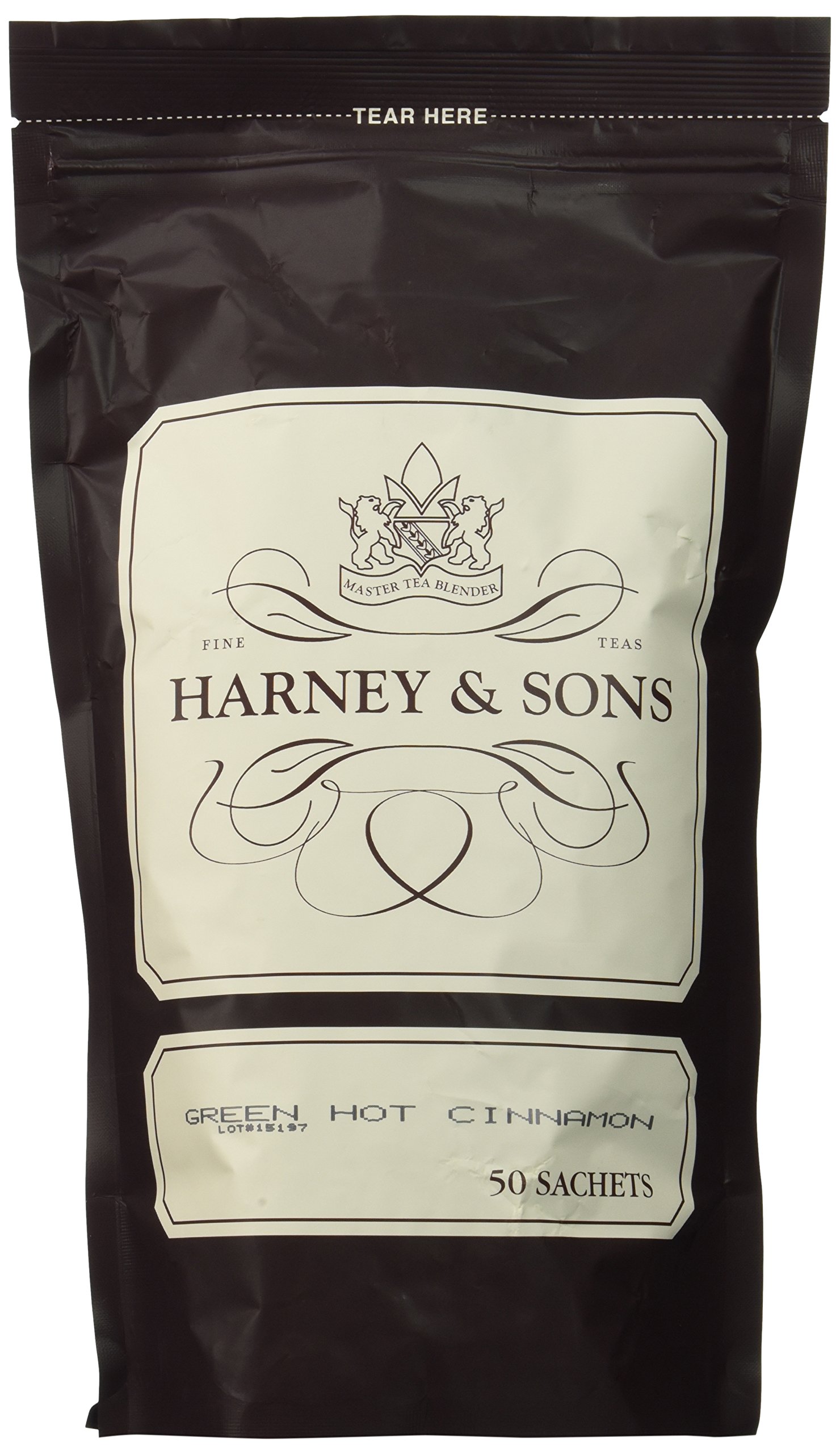 Harney and Sons most popular flavored tea worldwide, Hot Cinnamon Spice is an assertive blend of black teas, three types of cinnamon, orange peel, and sweet cloves. No sugar added. Kosher. This convenient bag of 50 sachets is perfect for anyone who doesn't want run out of Hot Cinnamon Spice. Each tea sachet brews a 12 oz cup.