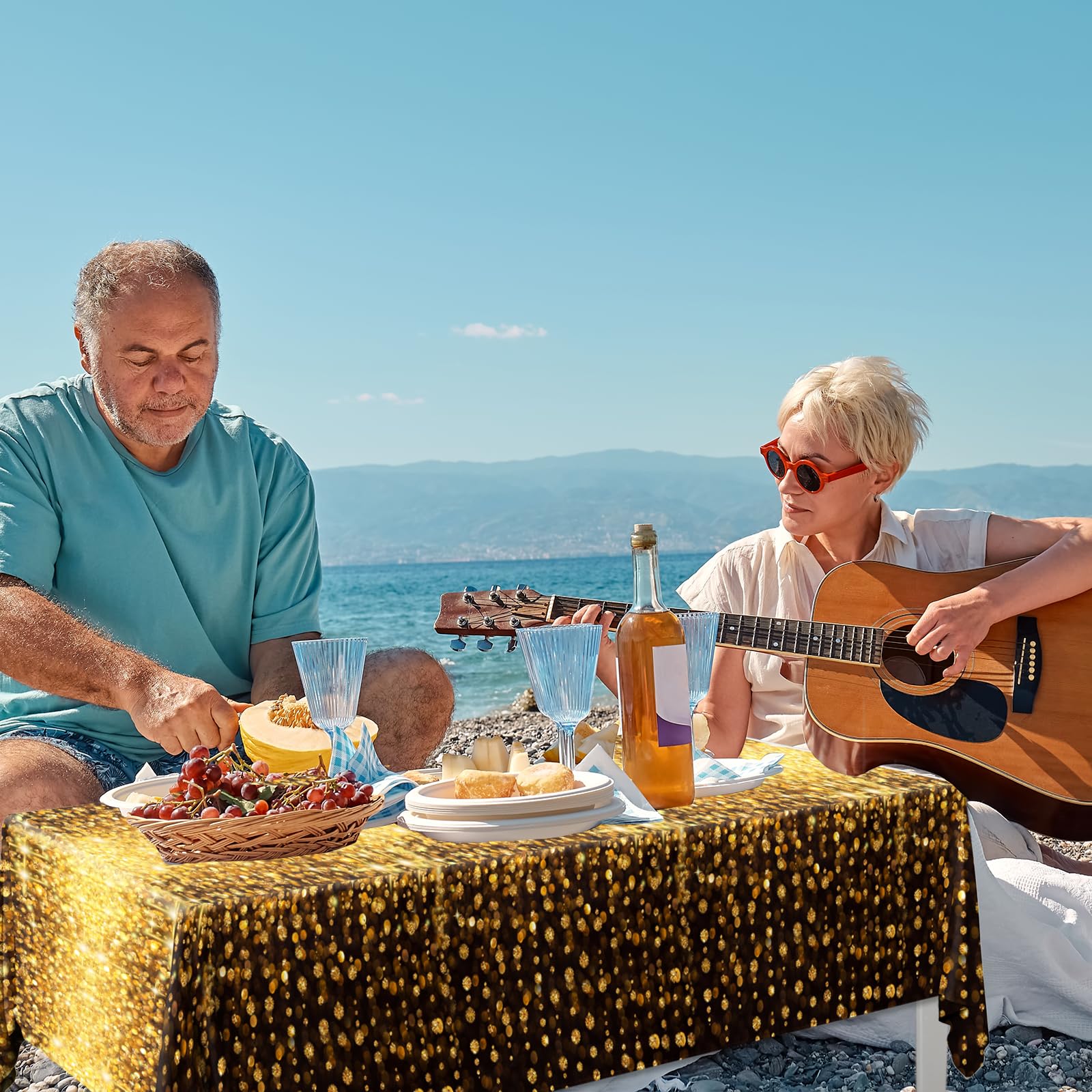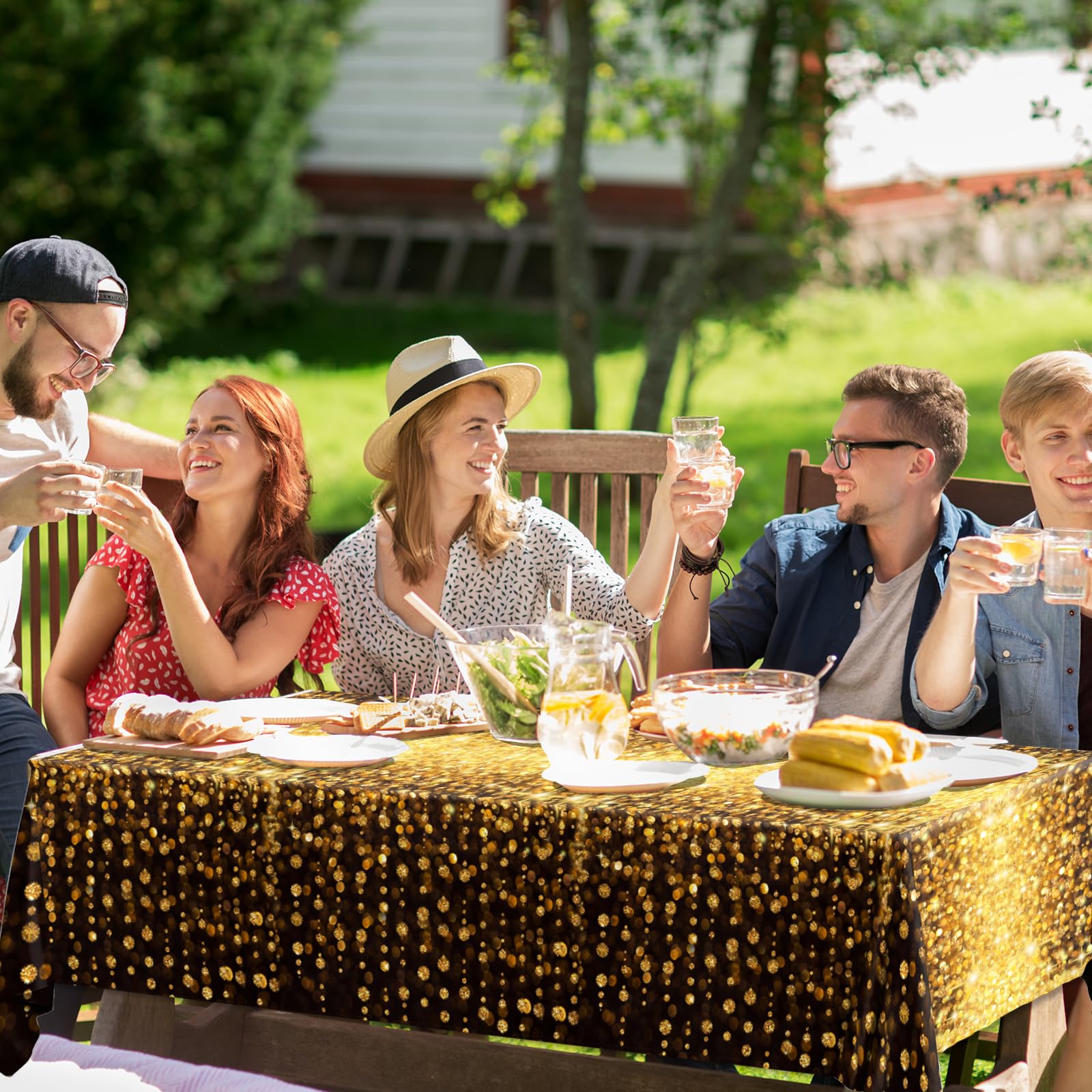 【EASY TO CLEAN】Gold and black tablecloths are easy to clean so that you can enjoy the party with your families and friends.After party,you don’t worry about how to clean up.Just wrap the trash with this disposable tablecloth and throw it away.Save time and make you fall in love with hosting a party.