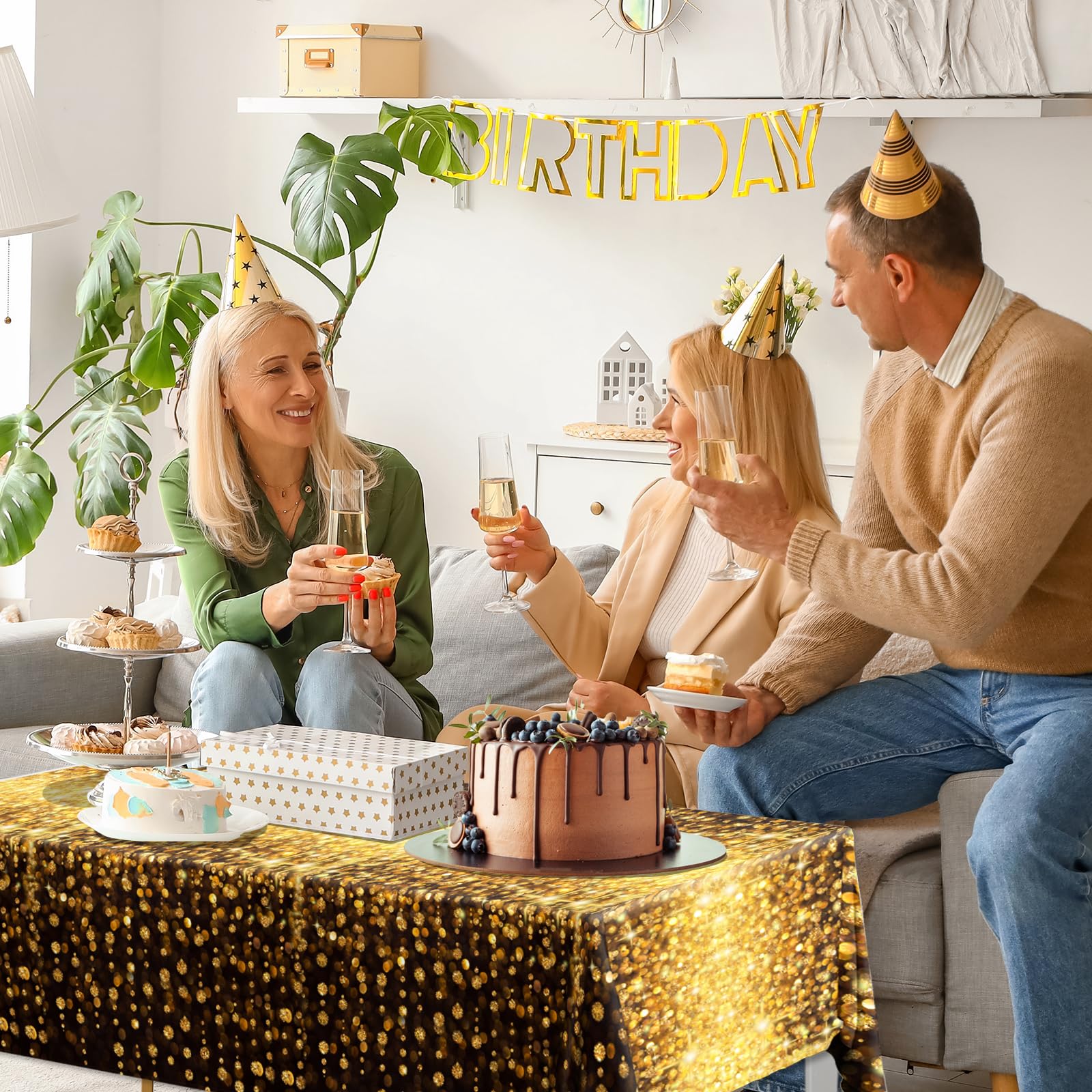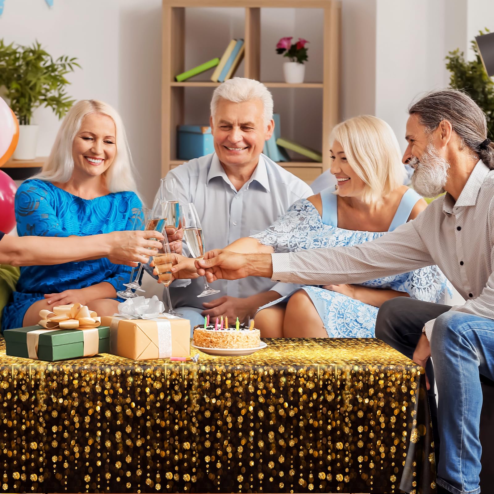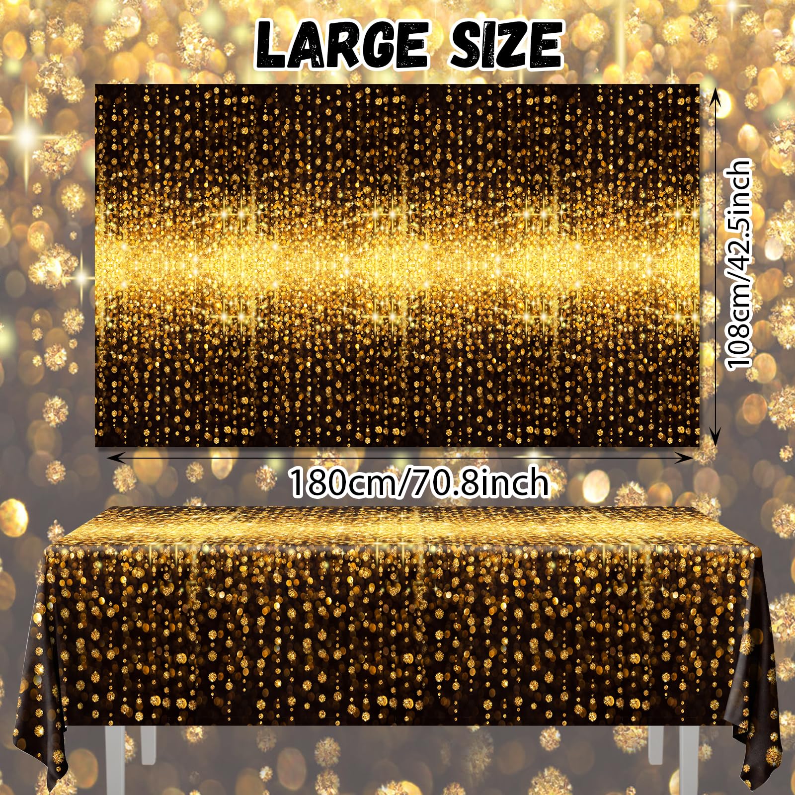 【HIGH QUALITY】This glitter gold black theme men tablecloth decoration is made of plastic, which is lighter and easier to use than other tablecloths. This is a waterproof tablecloth, high-quality plastic is not easy to break, easy to discard after use.