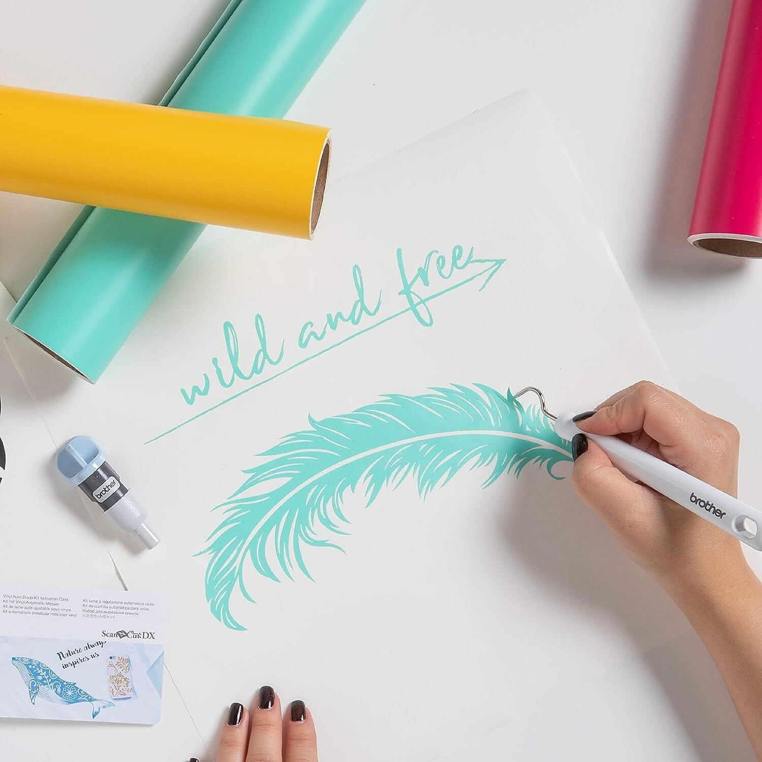 Create detailed vinyl projects with the Brother ScanNCut DX Vinyl Auto Blade kit. The Vinyl Auto Blade Kit features modern and lifestyle designs, which is ideal for seasonal and all-occasion projects. Included in the set is the Tiling function, which gives you the ability to make extra-large designs by breaking your design into separate quadrants. Also, there is a Weeding function, which is excellent for large vinyl projects. It makes weeding easier by cutting ‘weeding’ lines into the outside of the design. Use the Brother ScanNCut DX Vinyl Auto Blade Kit with your Brother ScanNCut DX Electronic Cutting Machine to create one-of-a-kind projects. The Brother ScanNCut DX Vinyl Auto Blade Kit comes with an activation card for 21 designs, weeding function & tiling function. Imported.
