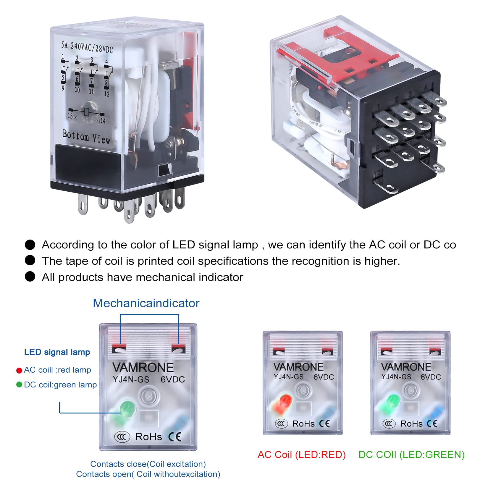 Red mechanical indicatoe:It can intuitively judge whether the relay is attracted