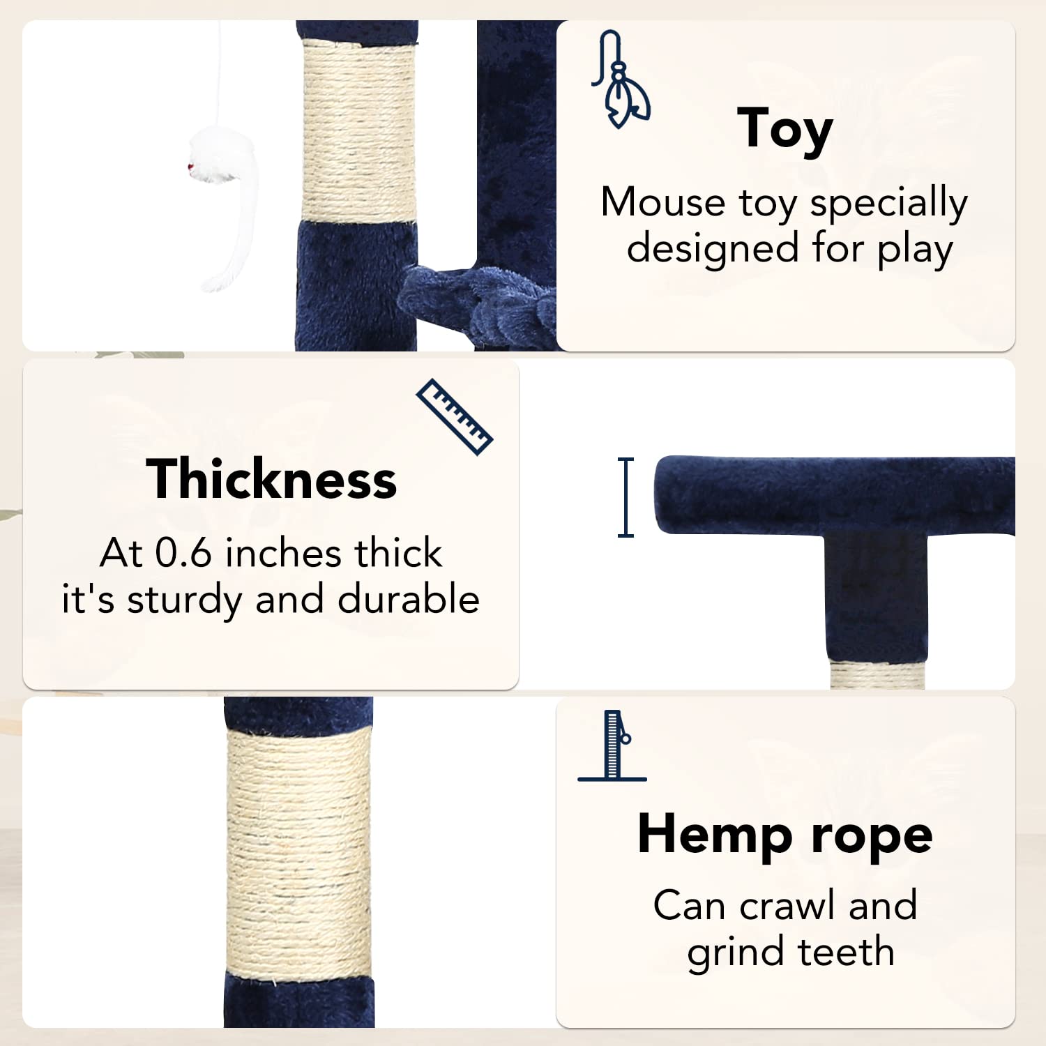 SCRATCHING POSTS & INTERACTIVE TOY: Sisal cat scratching posts satisfy your cat’s natural instincts, while the dangling plush toy keeps your kitty entertained and encourages playful activity.