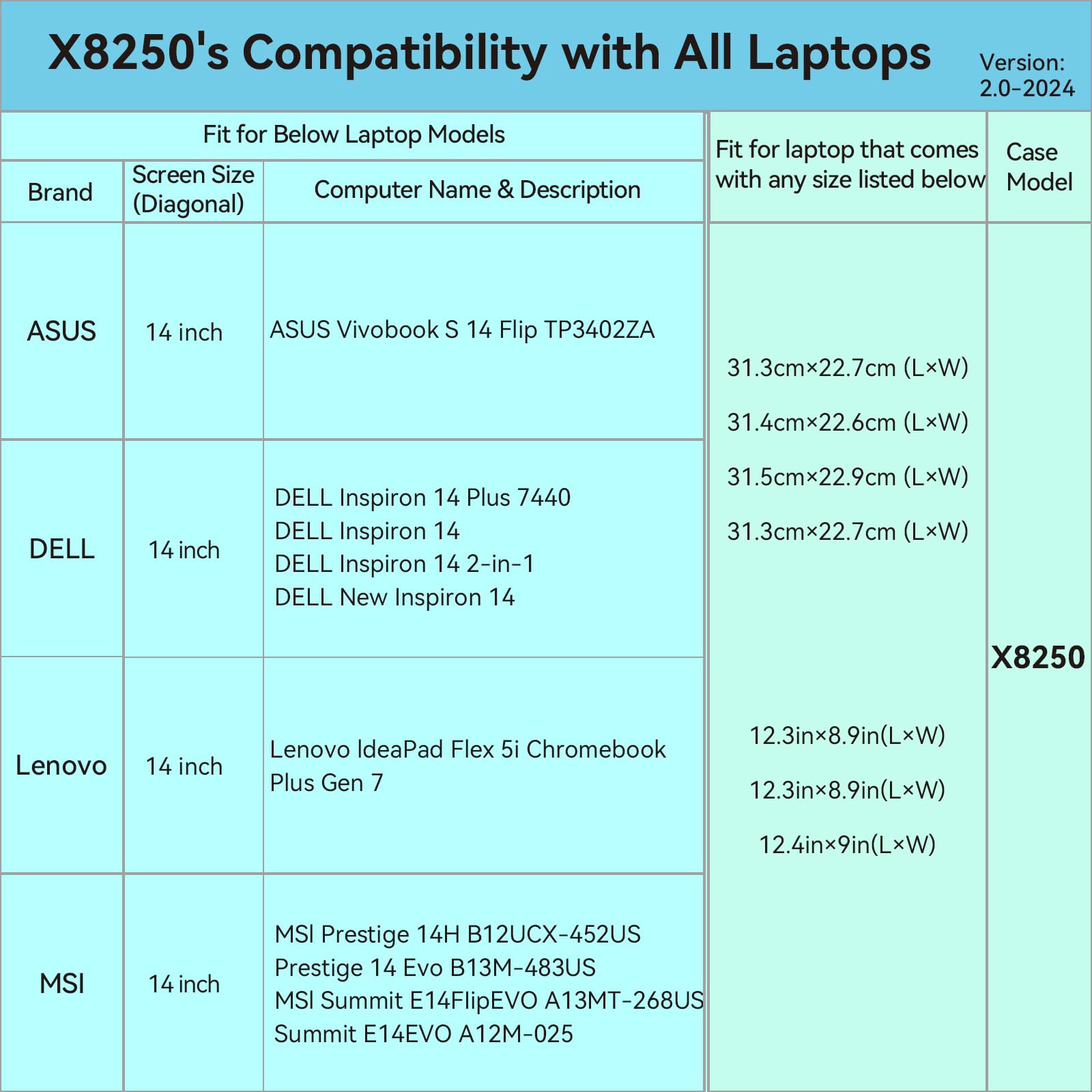 Model No.: M61 / X8250; internal dimension of the sleeve:33.0*24.3*2.2 cm (13.0x9.6x0.9 inch); external dimension of the sleeve: 34.8*27.0*3.4 cm (13.7x10.6x1.3 inch); weight: 551 grams