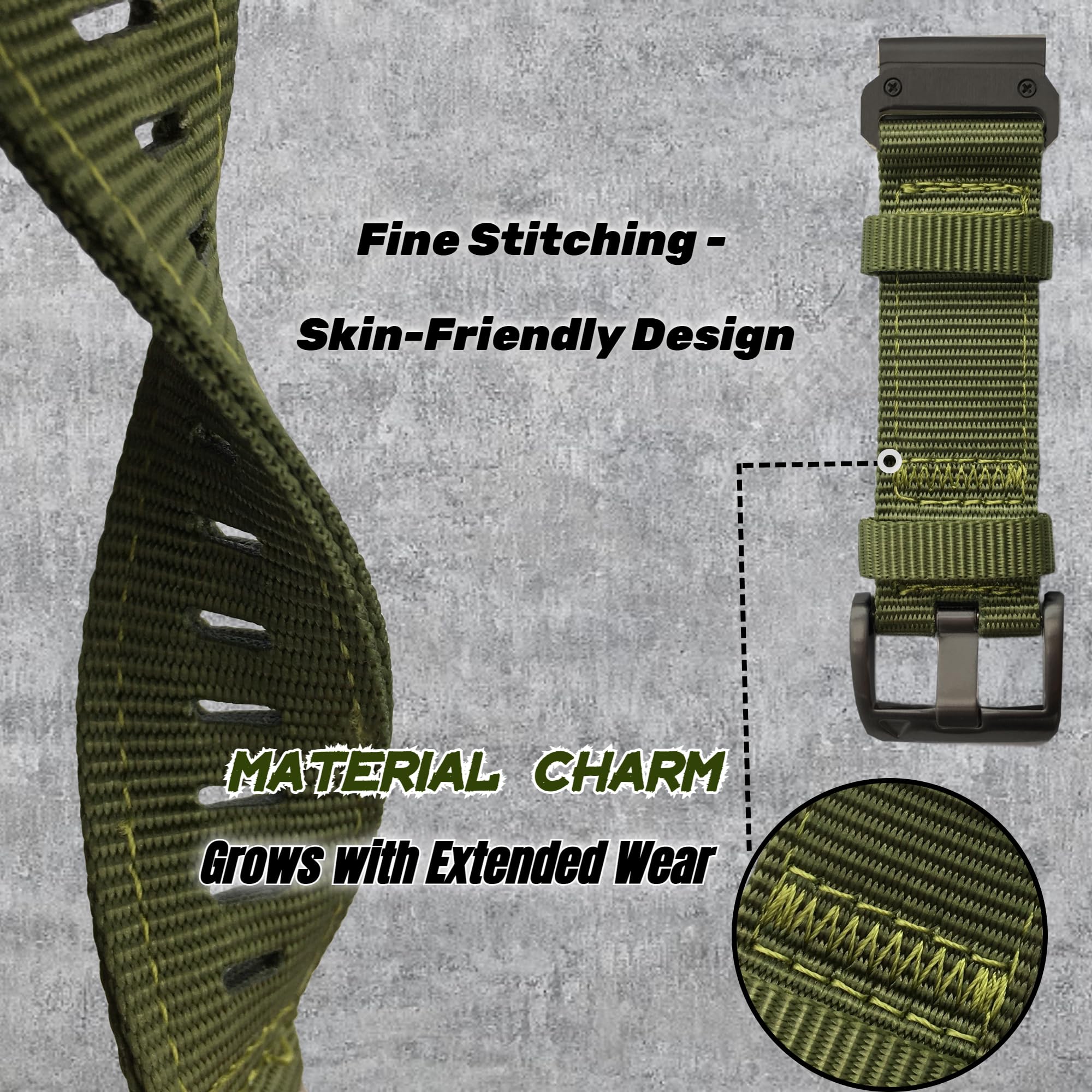 🔹【Size Guide】QuickFit 22mm fits 47mm case; 26mm fits 51mm case. Please check your watch case size or see product description details. Introducing EKINGEEK nylon watch strap designed for Garmin, featuring the second generation of high-quality nylon material. Newly released in March 2024, it offers enhanced softness while maintaining its shape—a result of improved craftsmanship and materials. As we continue to explore refinements in our processes, elevate your comfort with this latest addition.