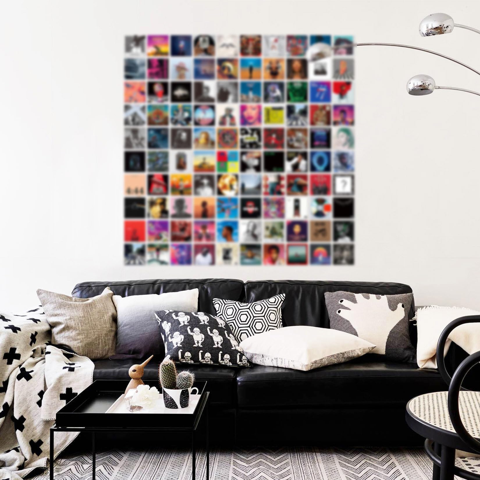 1. A Set Of 100 Album Pictures For Wall Decor. The Room Decor Album Cover Photos Have A Matte Finish. Each Photos Is 5x5 Square Print And Comes In A Protective Box.