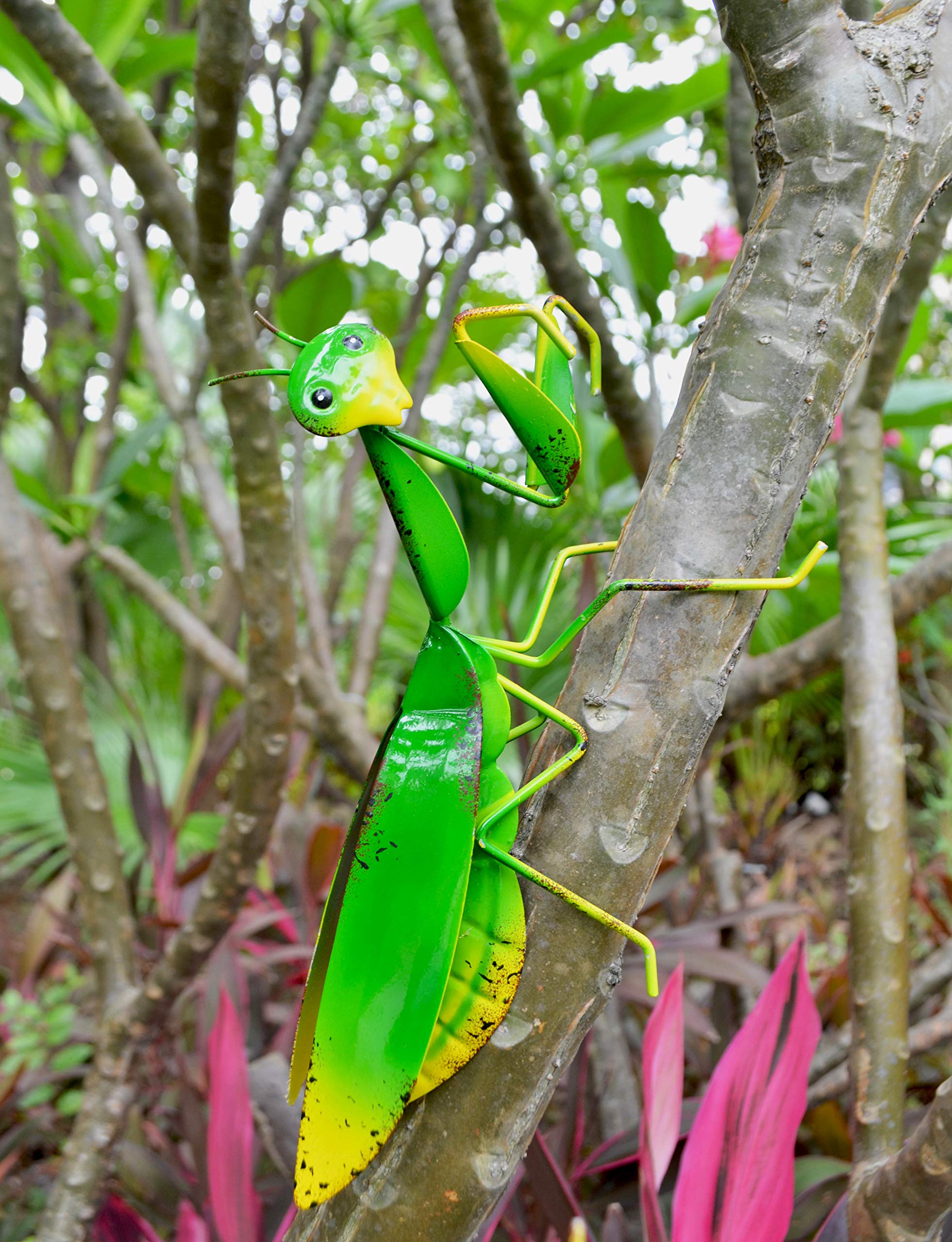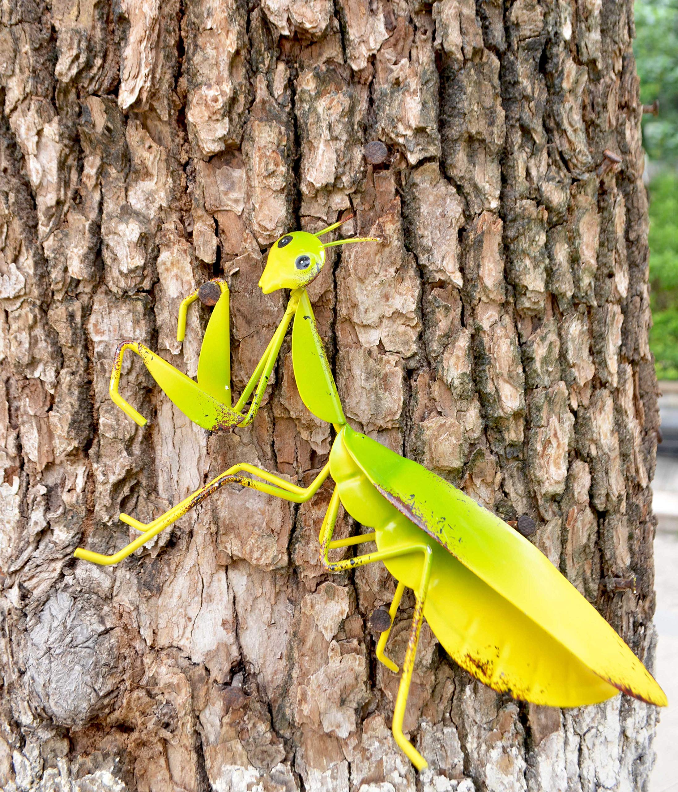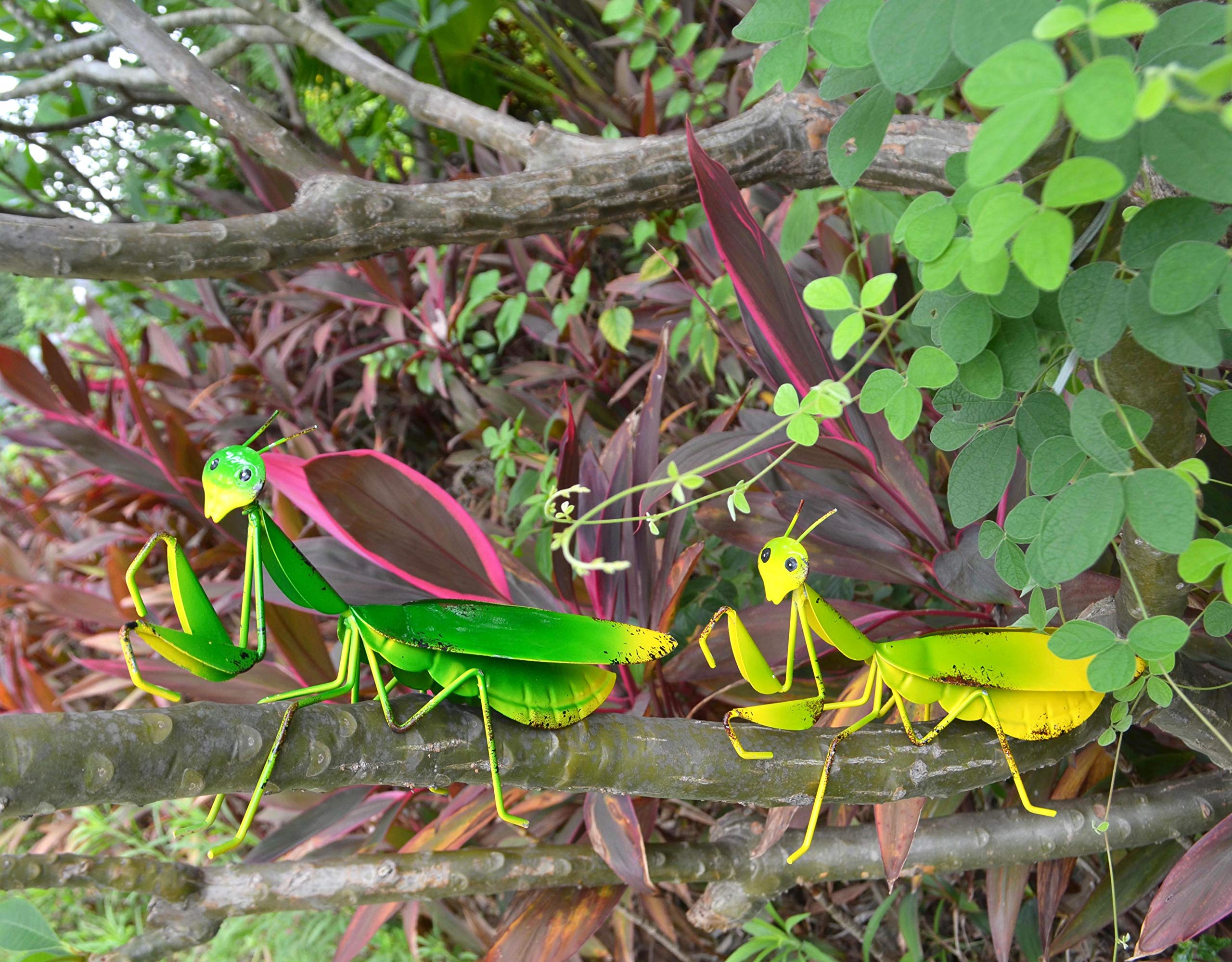 Charming metal mantis garden art can be outdoor table decor or can be hang on the trees, the porch, the fence, the lawn or the side of the flower