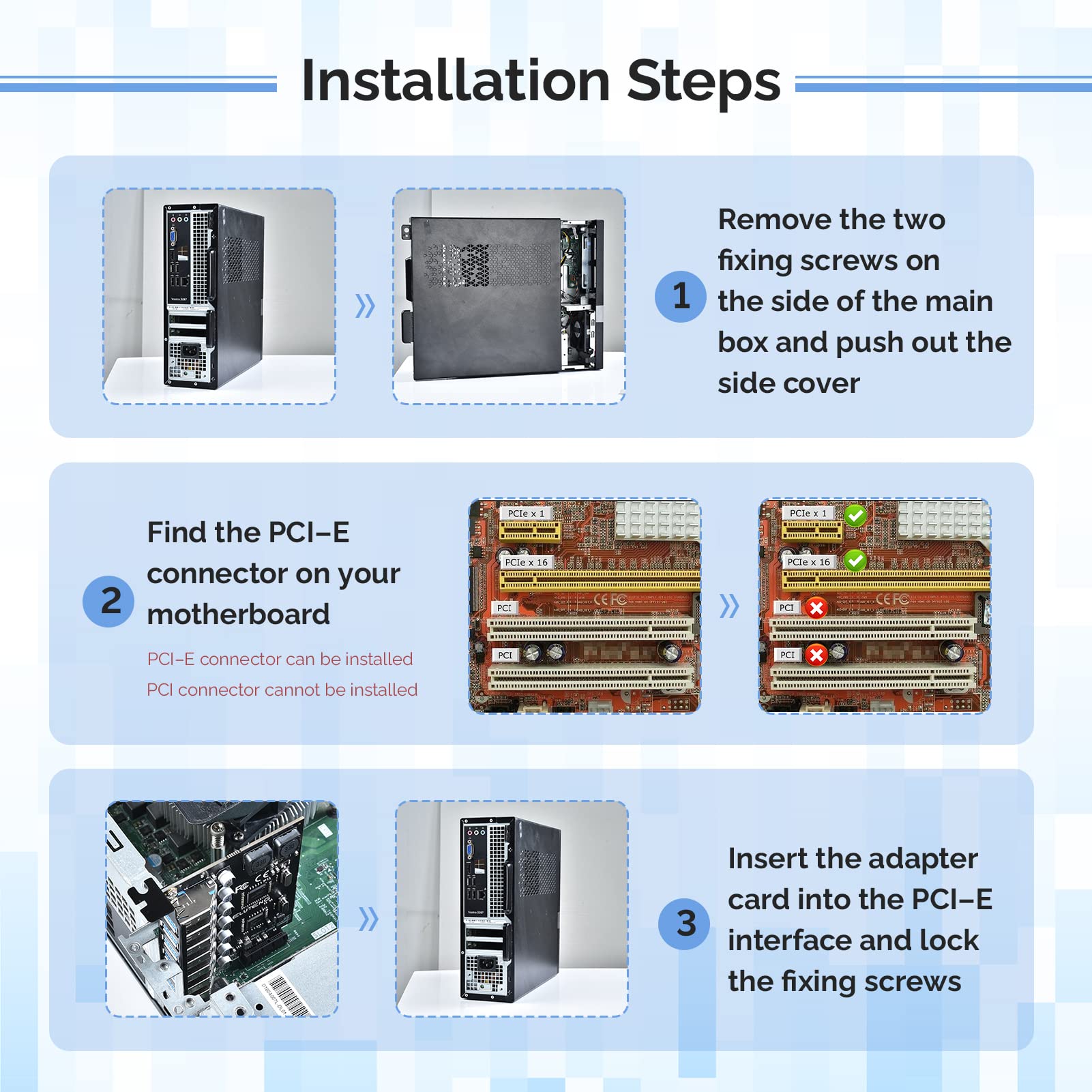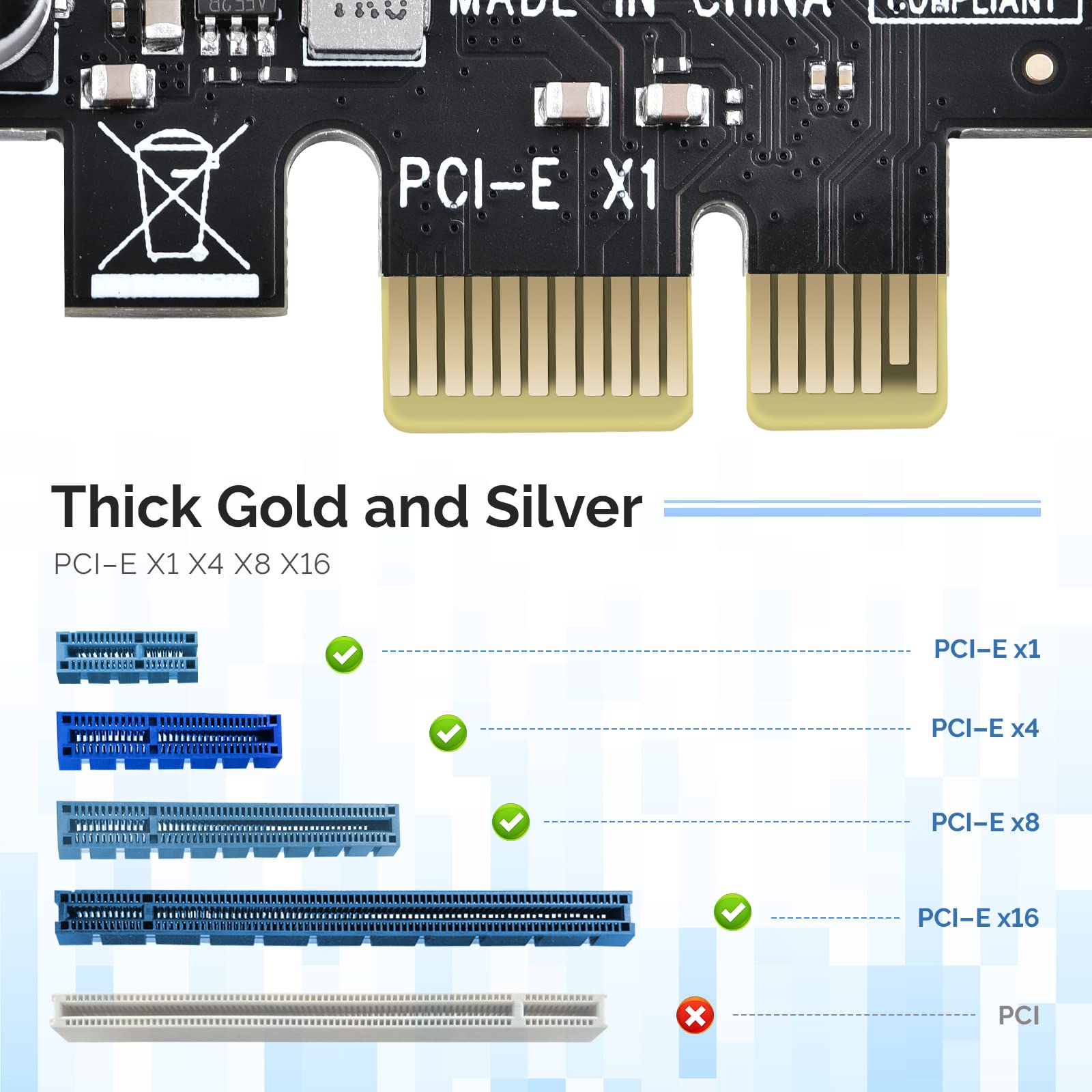 【Wide compatibility】 PCI-E X1 X4 X8 X16 compatible. Note: Not compatible with older PCI, backward compatible with USB 2.0 / 1.1, 64-bit and 32-bit Windows 11 / 10 / 8 / 7 / XP / Linux, not Mac compatible. Note: WIN8 and WIN10/11 users do not need to install the drive; XP and WIN7 users can download, unzip, install, and complete. (The corresponding installation directory for CD is DRIVERSǐ201R30230.EXE.)