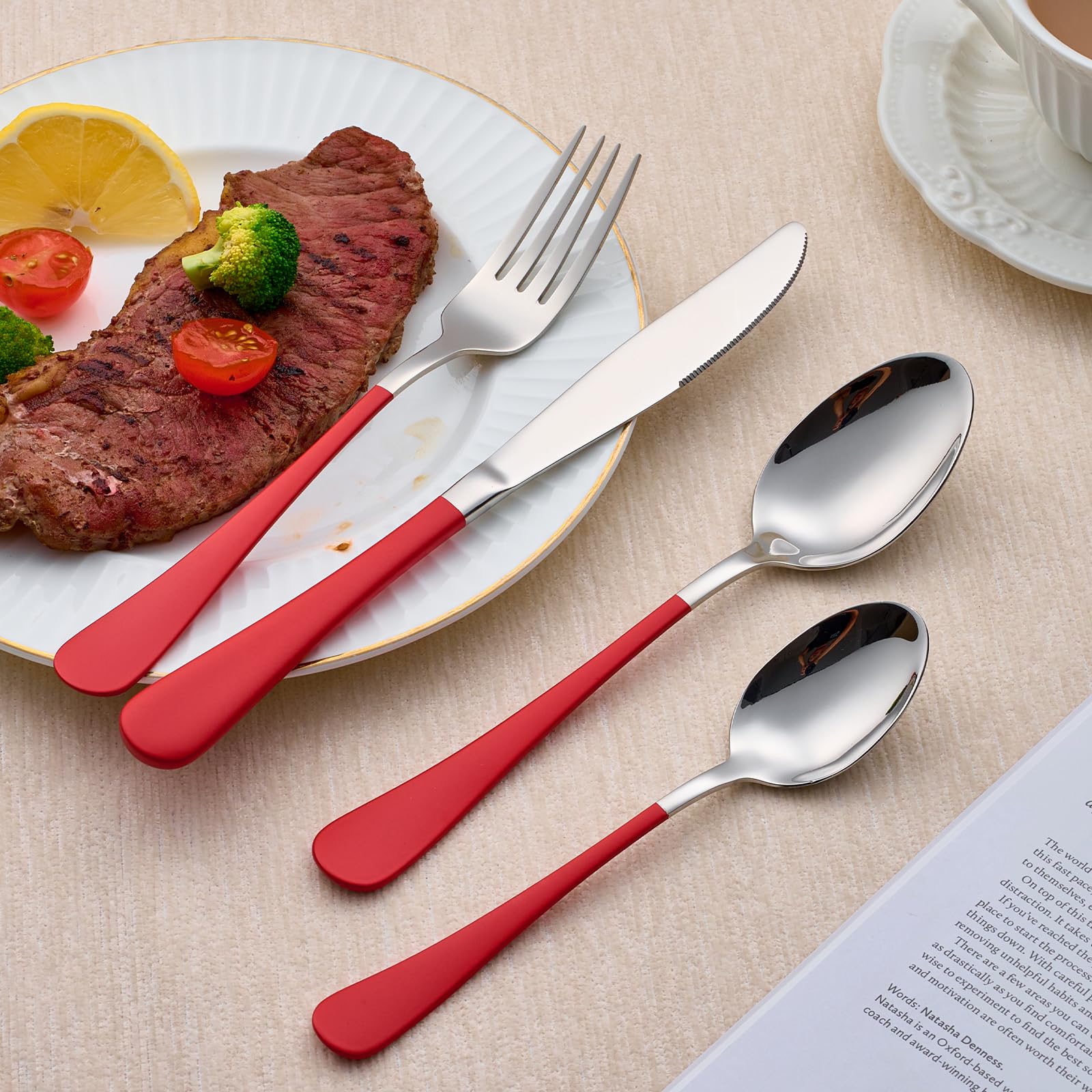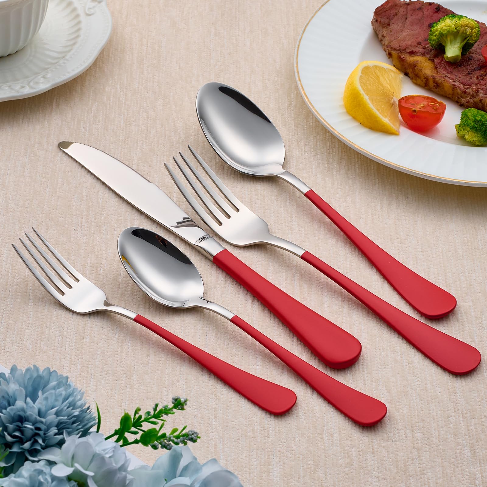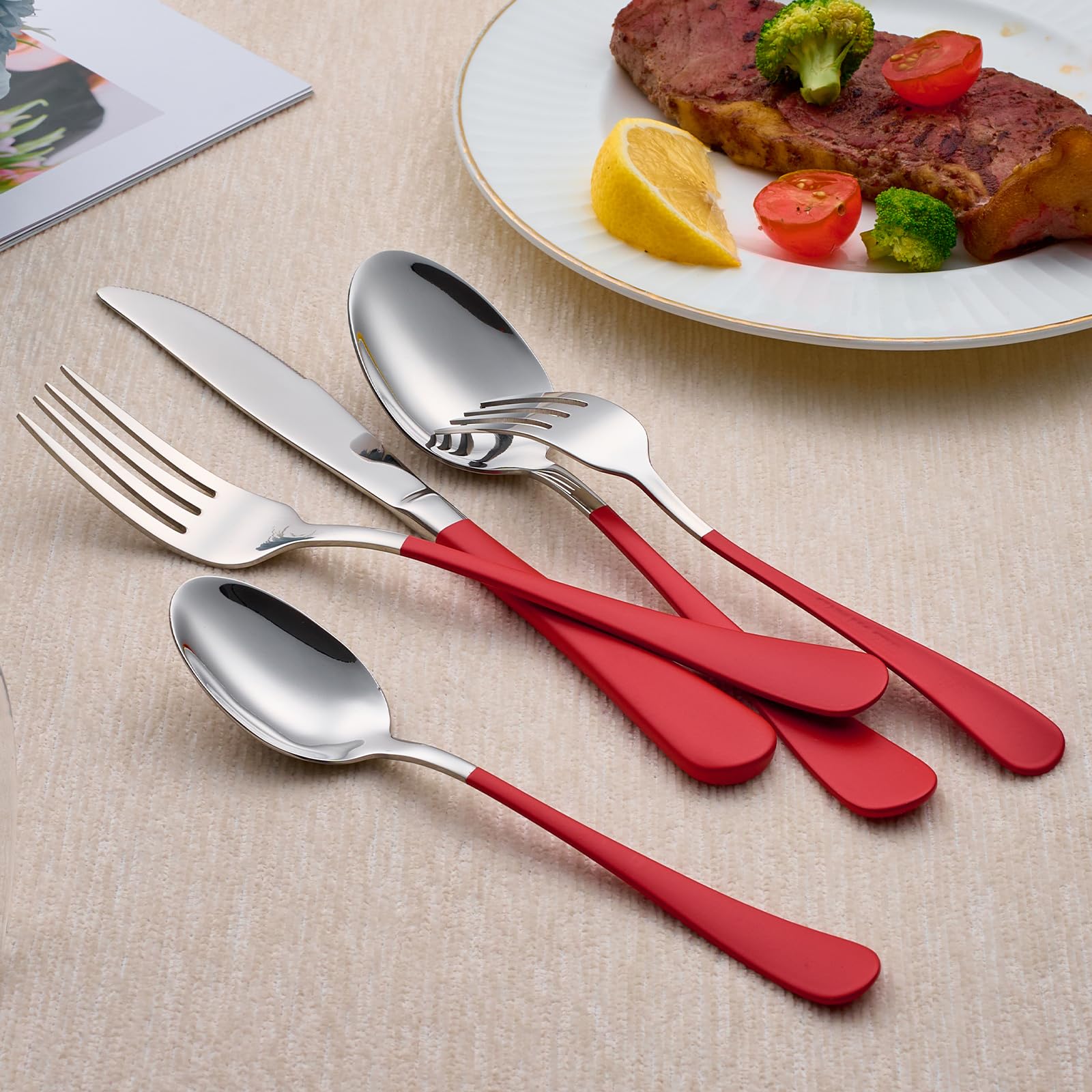 【DURABLE DESIGN】: Constructed of high-quality 18/0 stainless steel, this flatware set is rust and corrosion resistant for lasting use.
