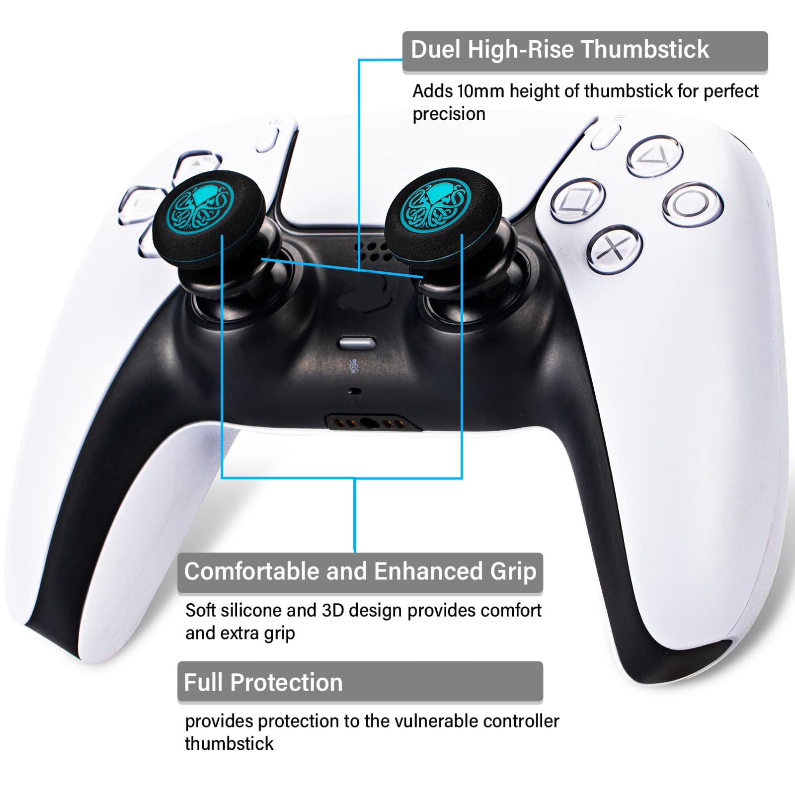 Playrealm Thumbstick Extender & Silicone Grip Cover Sets provide not only more accuracy in first-person shooting games, but also better control and comfort in racing and action games. The extra height with the extender installed on increases moving range for the stick for a same angle, which makes it much more easier to perform a precise aiming, turning and movement. The soft silicone grips also offer ideal comfort and protection. You will find everything under control in any game play with Playrealm's sets on. Compatibility: Fit offical Playstation 5 (PS5),Playstation 4 (PS4/Slim/PRO) controller, Do NOT fit any third party controllers; Material: Thumbstick Extenders: Plastic/PC Thumb Grips: Silicone Package Content: Thumbstick Extender x 2 Thumb Grips x 2 Notice: Controllers are not included; Please clean the thumb grips by cloth or tissue before use for best performance; Keep the sets away from baby under 3 years old; Keep the sets away from heat sorce and acid. 1 year warranty, any problem please contact us.