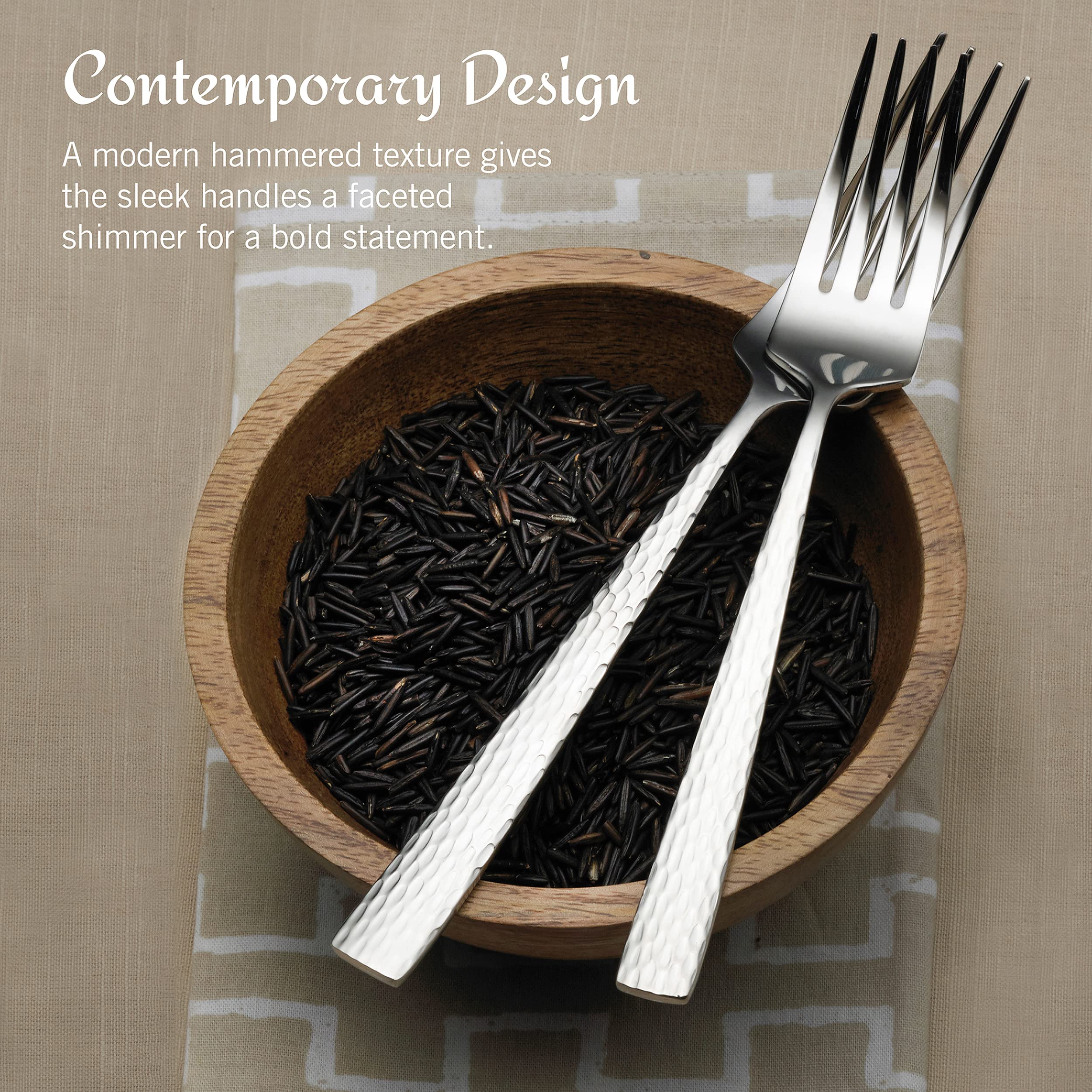 CONTEMPORARY DESIGN: A modern hammered texture gives the sleek handles a faceted shimmer that will make a bold statement at every dining occasion.