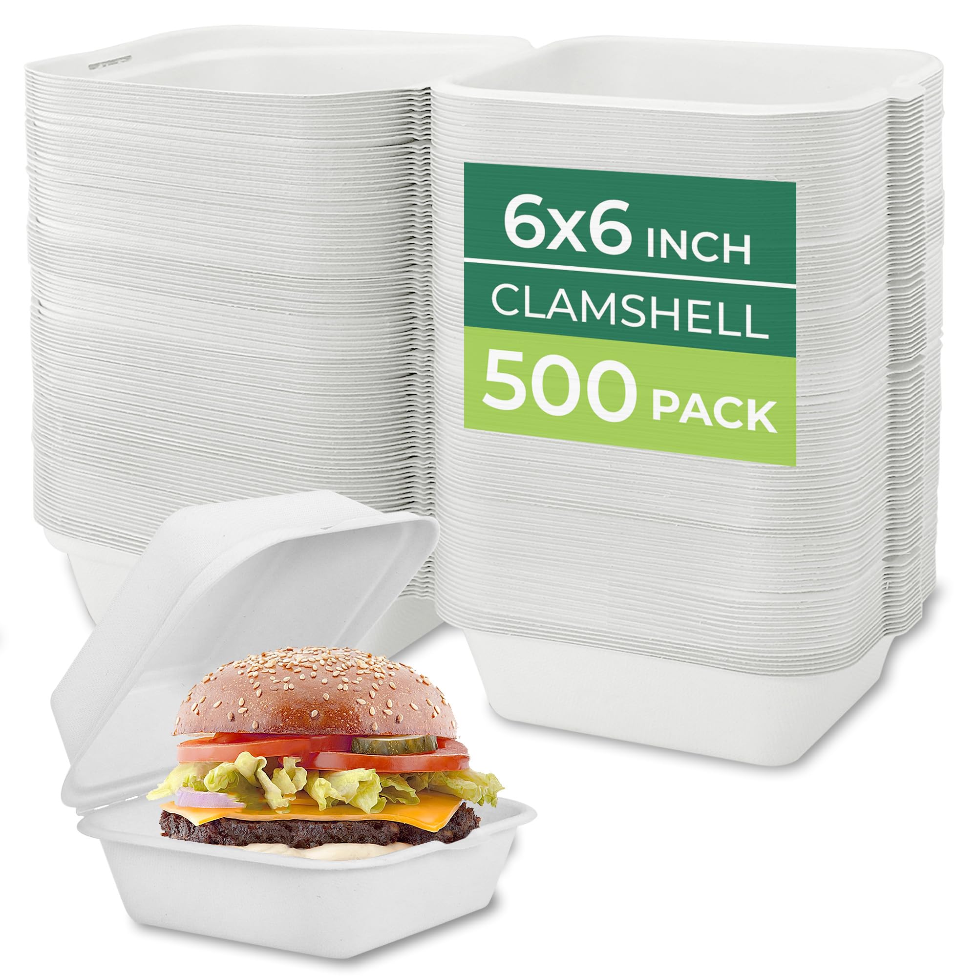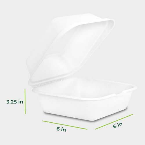 Eco-Friendly Choice / 100% Compostable - Our 6 x 6" 500 Pack Clamshell Containers complies with BPI-certified standards for compostability. They are unbleached and PFAS Free - So you don’t have to worry about fluorine or chlorine chemicals. Ensure environmental friendliness by using PFAS Free 100% Compostable food containers made from Renewable and Sustainable Plant Resources – At a commercial compost facility, they'll return to nature in 90 days.