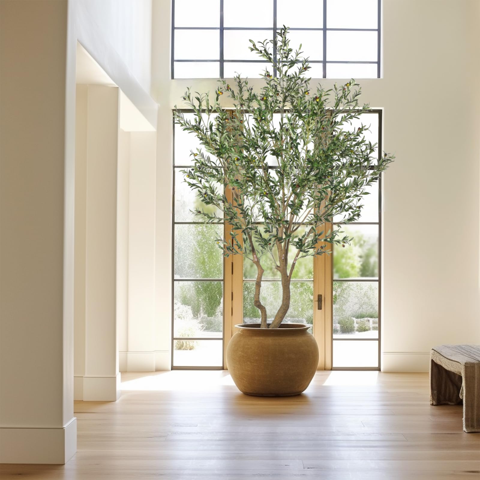 【Realistic Looking】This olive trees artificial indoor uses very detailed craftsmanship to make the tree looks lifelike. It has silk leaves, full shape, realistic texture, natural connections. It will be a beautiful scenery in your home.