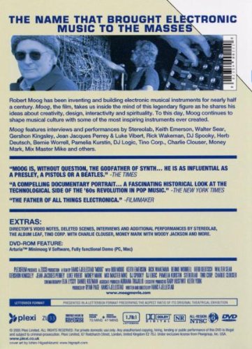 Amazon.com A man who genuinely revolutionized late-20th Century music gets his due with Moog, writer-director Hans Fjellestad's absorbing documentary about Robert Moog, inventor of the synthesizer that bears his name. In his seventies when this 2004 film was made, Moog began working with electronic music in the late 1940s, when he designed and built theremins (the source of the wavy sci-fi sound heard on the Beach Boys' "Good Vibrations"). But it was the development of the Moog synthesizer, an analog instrument with electronic components, that put him on the map. Unsurprisingly, it was initially dismissed as a soulless novelty, a notion not helped by its use in silly commercial jingles; Moog himself was regarded as nothing less than a dangerous anarchist out to destroy music as we know it. That all changed when he added a keyboard to his machine and musicians of all stripes gradually began using it for more serious ends. Moog credits Walter (now Wendy) Carlos' Switched-On Bach as the first important milestone, and the list of major artists who have used it since then includes the Beatles (on Abbey Road), Stevie Wonder (a vital early proponent who for some reason goes completely unmentioned here), Keith Emerson of Emerson, Lake & Palmer, and Rick Wakeman of Yes. The latter two perform briefly in the film, as do many others (P-Funk's Bernie Worrell, Sun Ra, Charlie Clouser of Nine Inch Nails), but Moog is the star here. Indeed, it's hard not to believe this genial, self-effacing man when he talks of the "spiritual connection" between his invention and the people who play it. --Sam Graham Product Description ROBERT MOOG HAS BEEN INVENTING AND BUILDING ELECTRONIC MUSICAL instruments for nearly half a century. MOOG, the film, takes us inside the mind of this legendary figure as he shares his ideas about creativity, design, interactivity, and spirituality. To this day, Moog continues to shape musical culture with some of the most inspiring instruments ever created. MOOG features interviews and performances by Stereolab, Keith Emerson, Walter Sear, Gershon Kinsgley, Jean-Jacques Perrey & Luke Vibert, Rick Wakeman, DJ Spooky, Herb Deutsch, Bernie Worrell, Pamelia Kurstin, Tino Corp., Charlie Clouser, Money Mark, Mix Master Mike and others. Review A compelling documentary portrait...A fascinating historical look at the technological side of the 60's revolution in pop music. -- The New York Times One of the most influential inventors in the history of rock and roll. -- Entertainment Weekly The father of all things electronica. -- Filmmaker