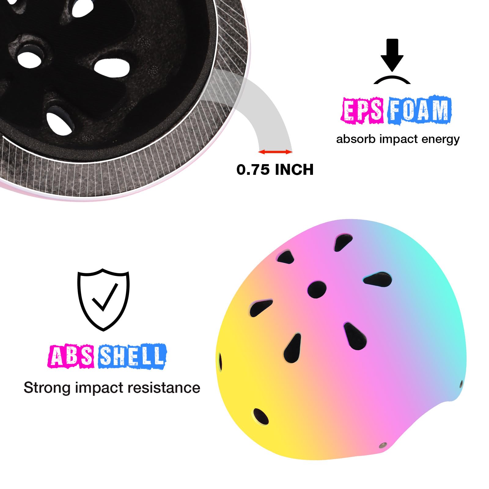 🎁Impact Resistance📍: Our sport helmet for kids is made with an impact-resistant ABS shell and high-density EPS foam, providing sturdy, double protection. The internal soft padding absorbs sweat and reduces impact. It is removable for easy cleaning. The toddler bike helmet has 11 vents to keep kids cool and comfortable during various sports. Our goal is to keep kids safe and help them enjoy outdoor activities more.