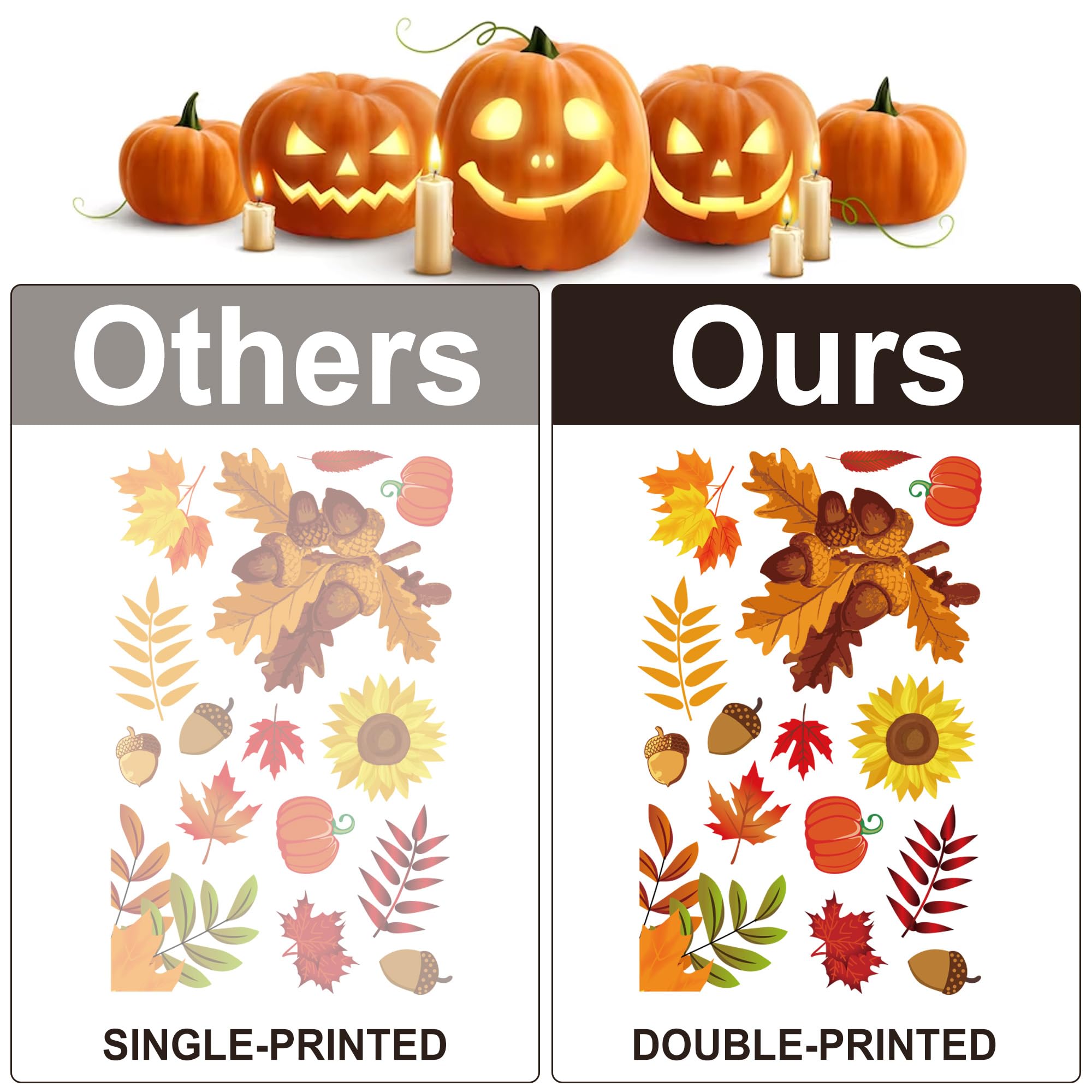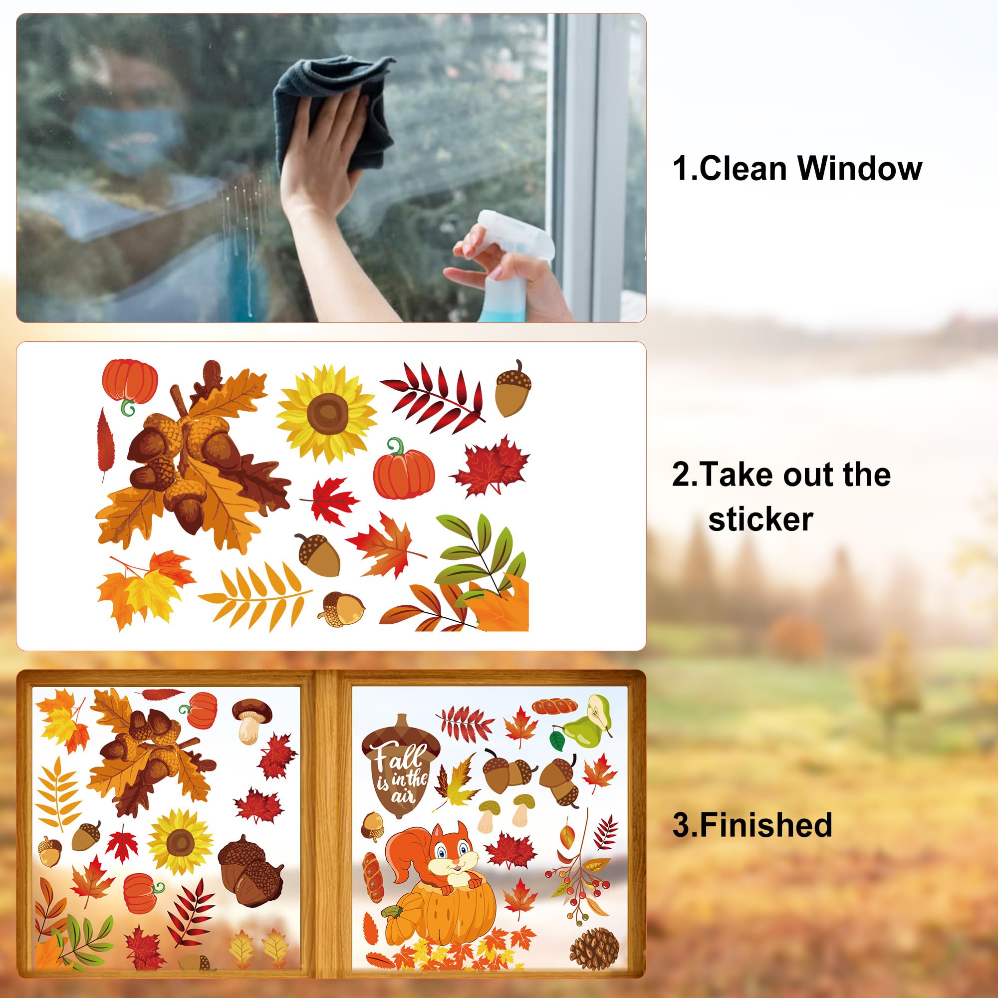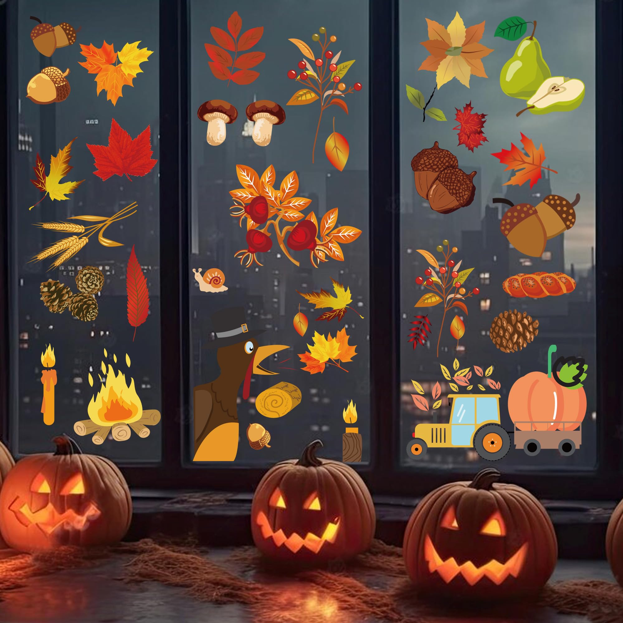 Fall window decor have wide application:Fall window clings for glass windows are very suitable for Thanksgiving, fall, autumn and harvest season occasions. Fall window stickers can be used in windows and glass. fall window clings can create a strong holiday atmosphere for your party. it's more fun to post as you like.