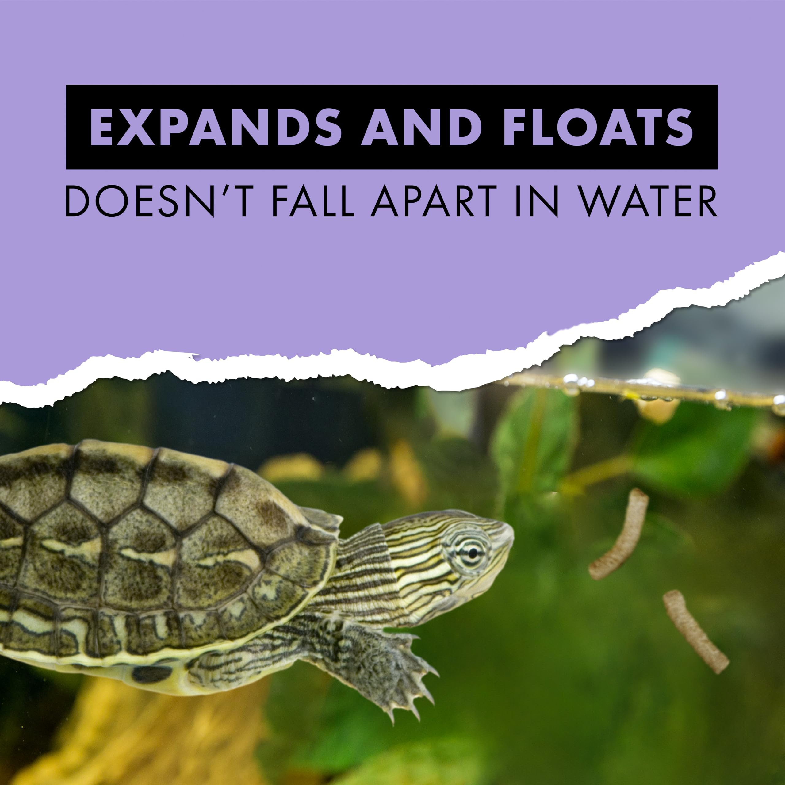 FLOATS IN WATER WITHOUT FALLING APART when fed to turtles. The food expands and floats so your turtles can enjoy the eating experience.