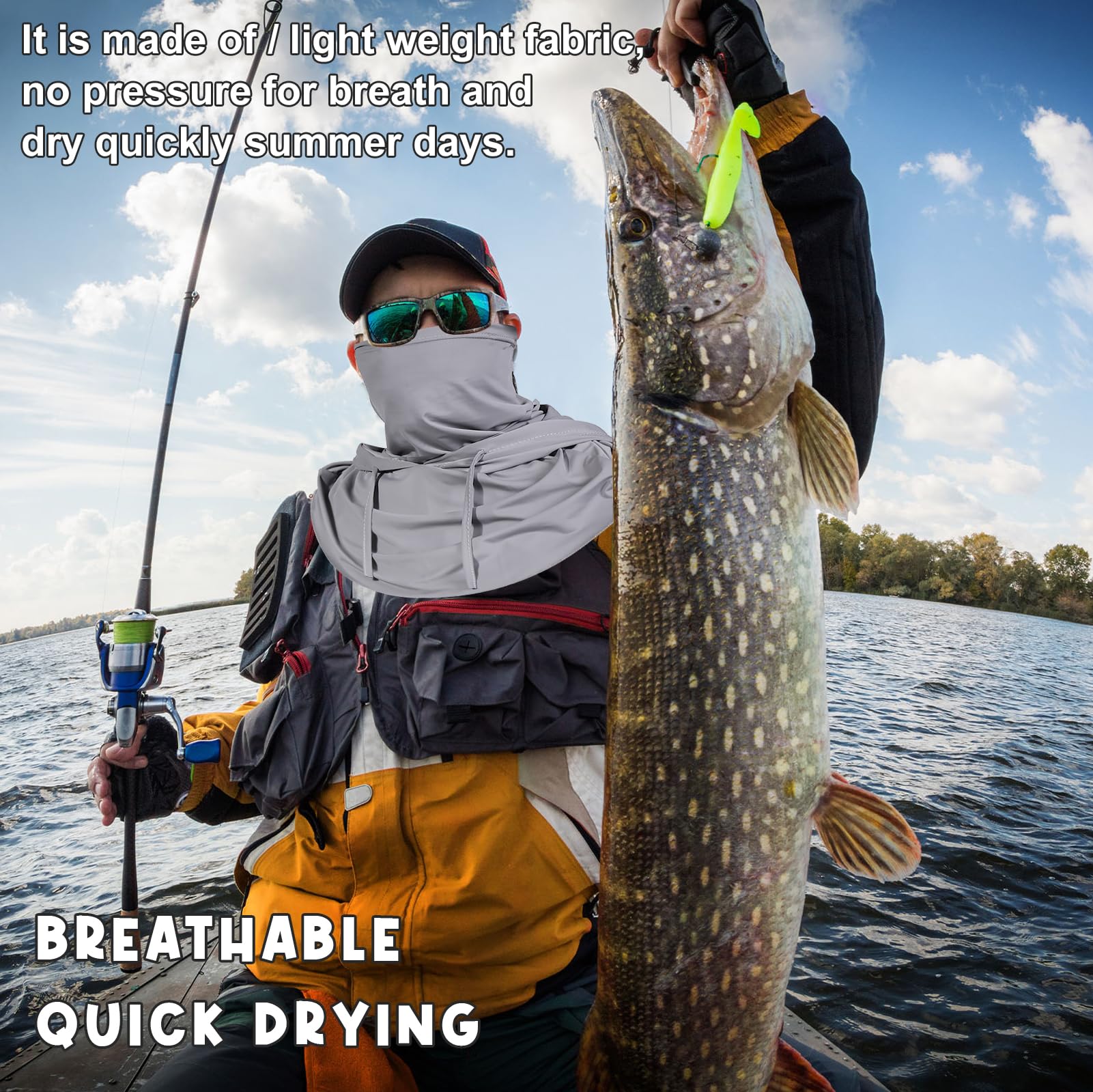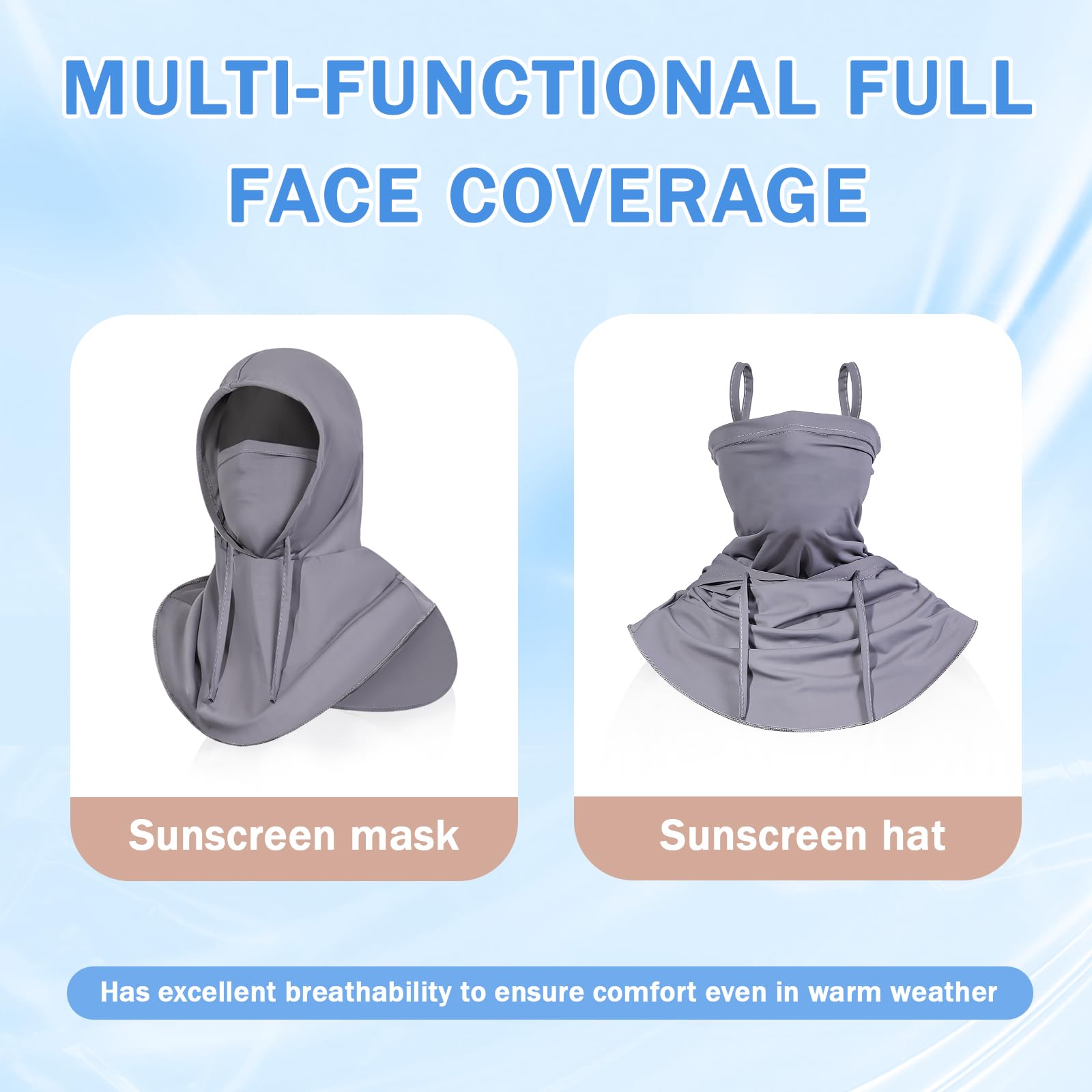 UPF 50+ Cooling Material:blocks 98% of UVA/UVB rays. not afraid of sweating even during outdoor sports. Protect your head and face from UV rays, dust, and wind