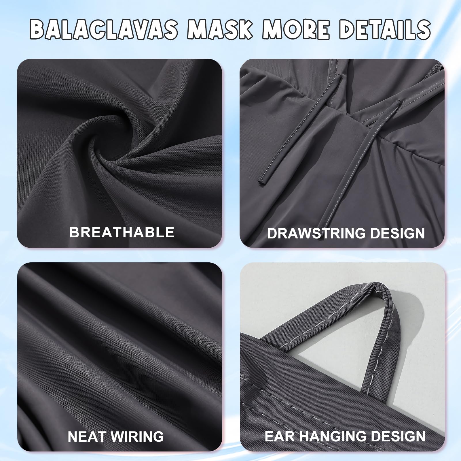 Light Head Hood:breathable, lightweight, giving it elasticity, while remaining soft and silky to the touch as it brings comfy.