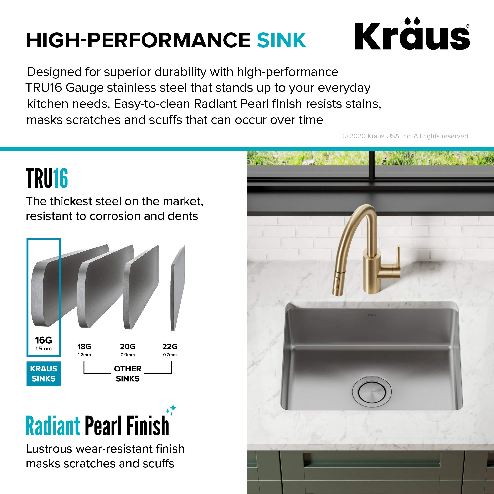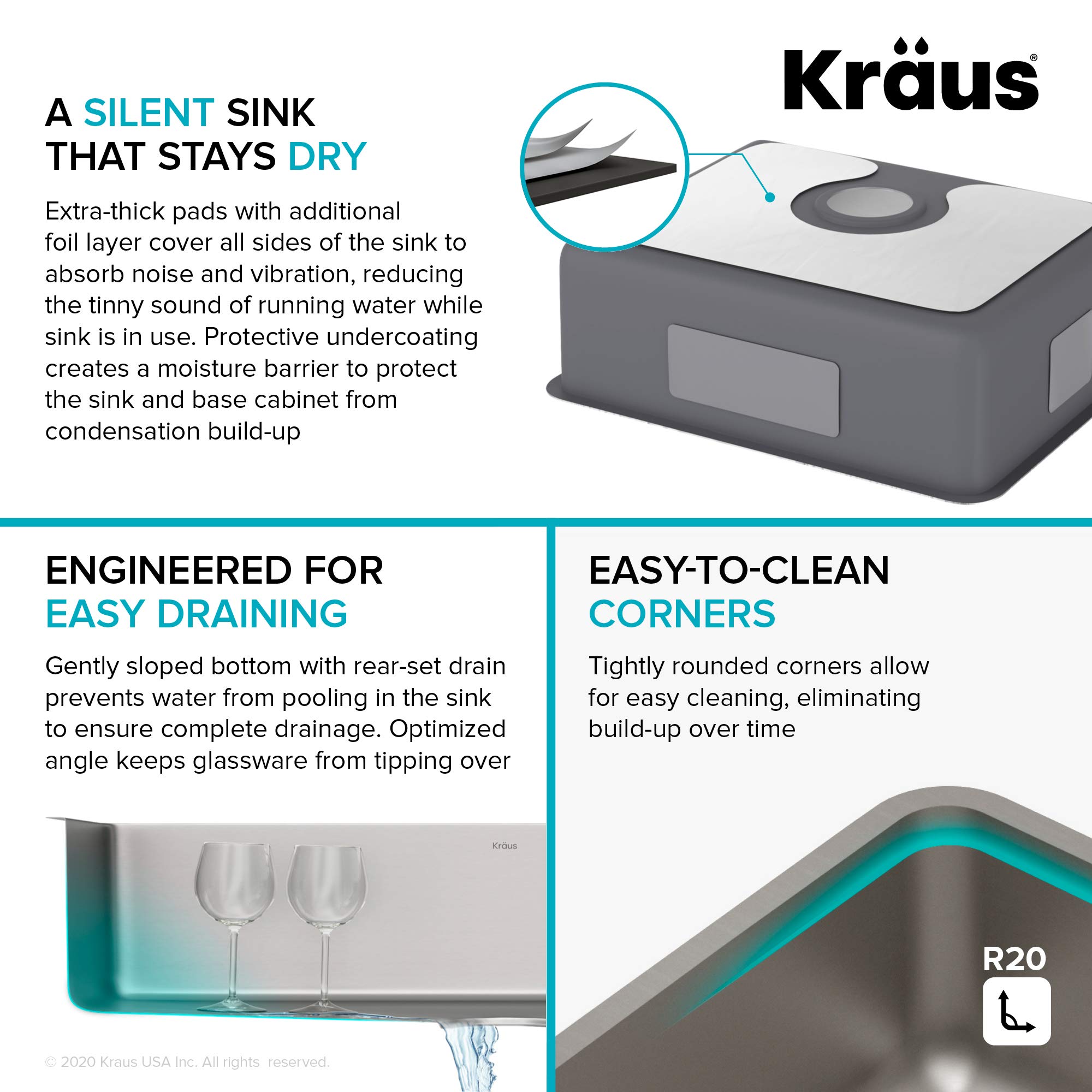 HEAVY-DUTY CONSTRUCTION with high-performance TRU16 Gauge stainless steel that stands up to your everyday kitchen needs – RADIANT PEARL FINISH: Easy-to-clean and wear-resistant, masks scratches and scuffs that can occur over time – SUPERIOR SOUNDPROOFING: Ultra-quiet NoiseDefend pads with innovative foil layer absorb noise and vibration while sink is in use – Anti-condensation undercoating helps prevent moisture build-up to reduce the risk of water damage in the base cabinet