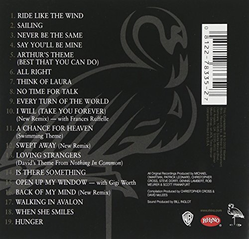 The Very Best of Christopher Cross packs a single CD with 16 tracks from 9 solo and soundtrack album's released by Warner Bros., Reprise, Columbia, Ariola/BMG, and Arista from 1980-1994. Features the Top 5 hits "Ride Like the Wind" (#2 Pop), "All Right" (#3 A/C), "Sailing" (#1 Pop).
