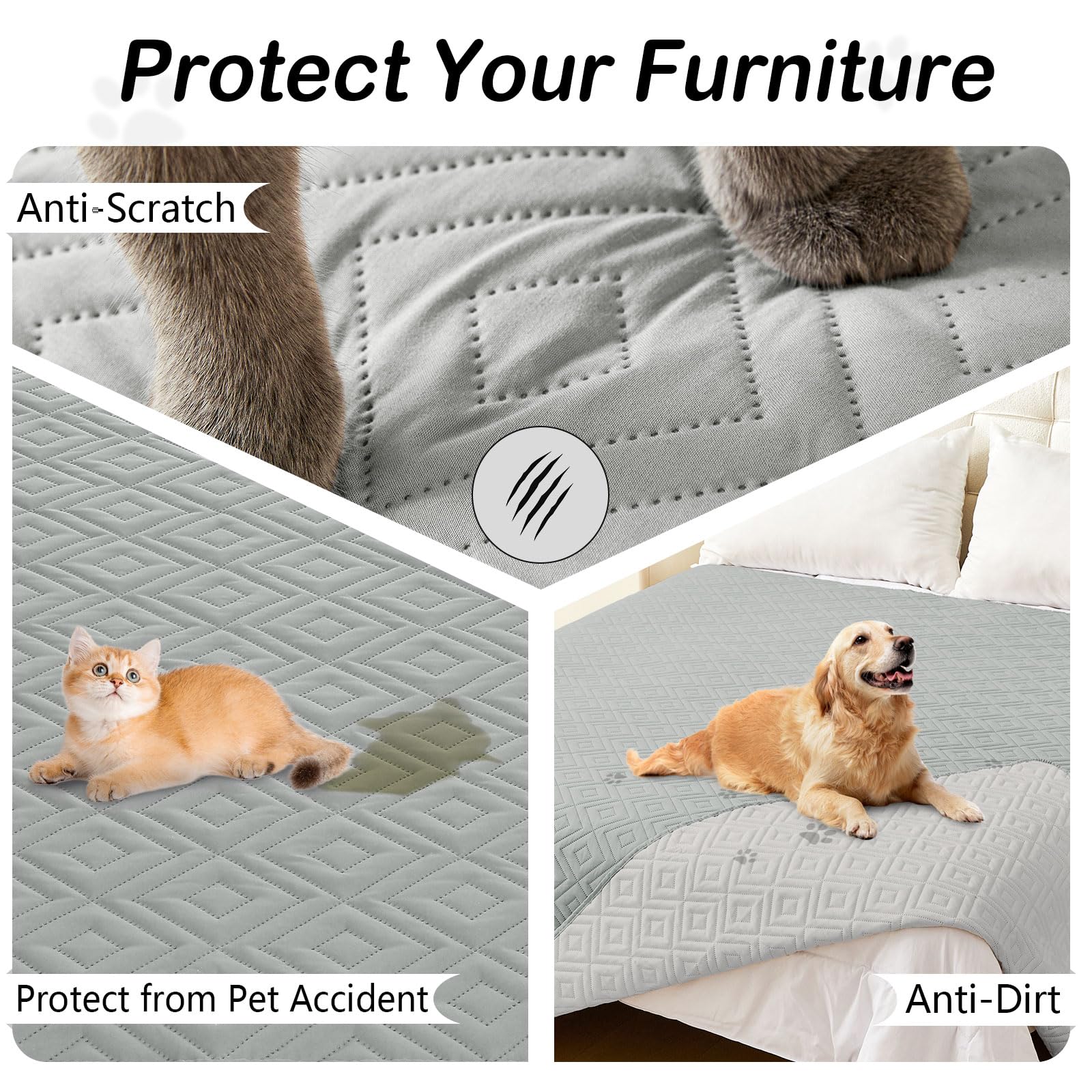 【Furniture Protector】Our waterproof couch covers for pets can protect your sofa, bed, kennel from stains, urine, pet hair and damage. Keeps your furniture looking new and fresh for families with children, dogs and cats.