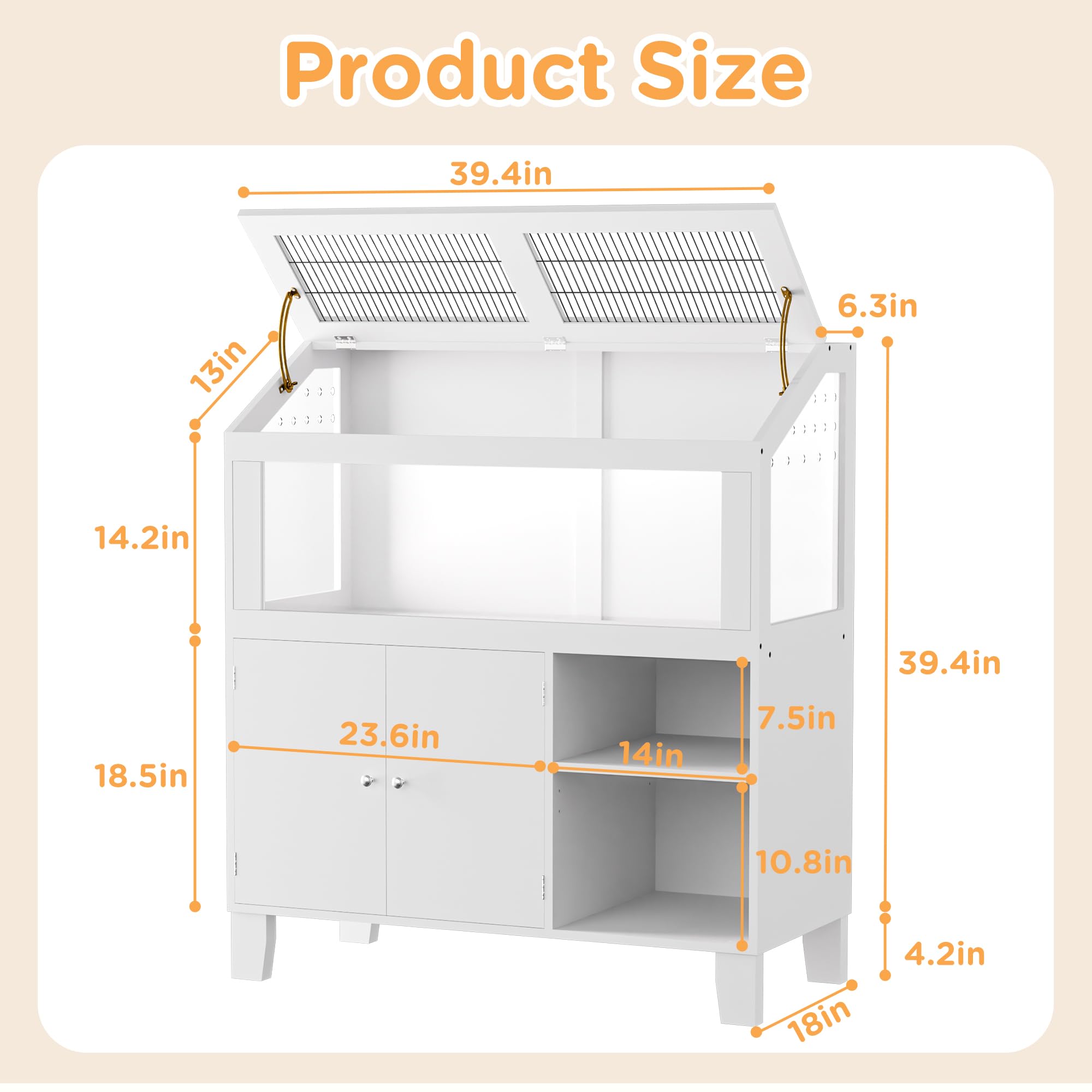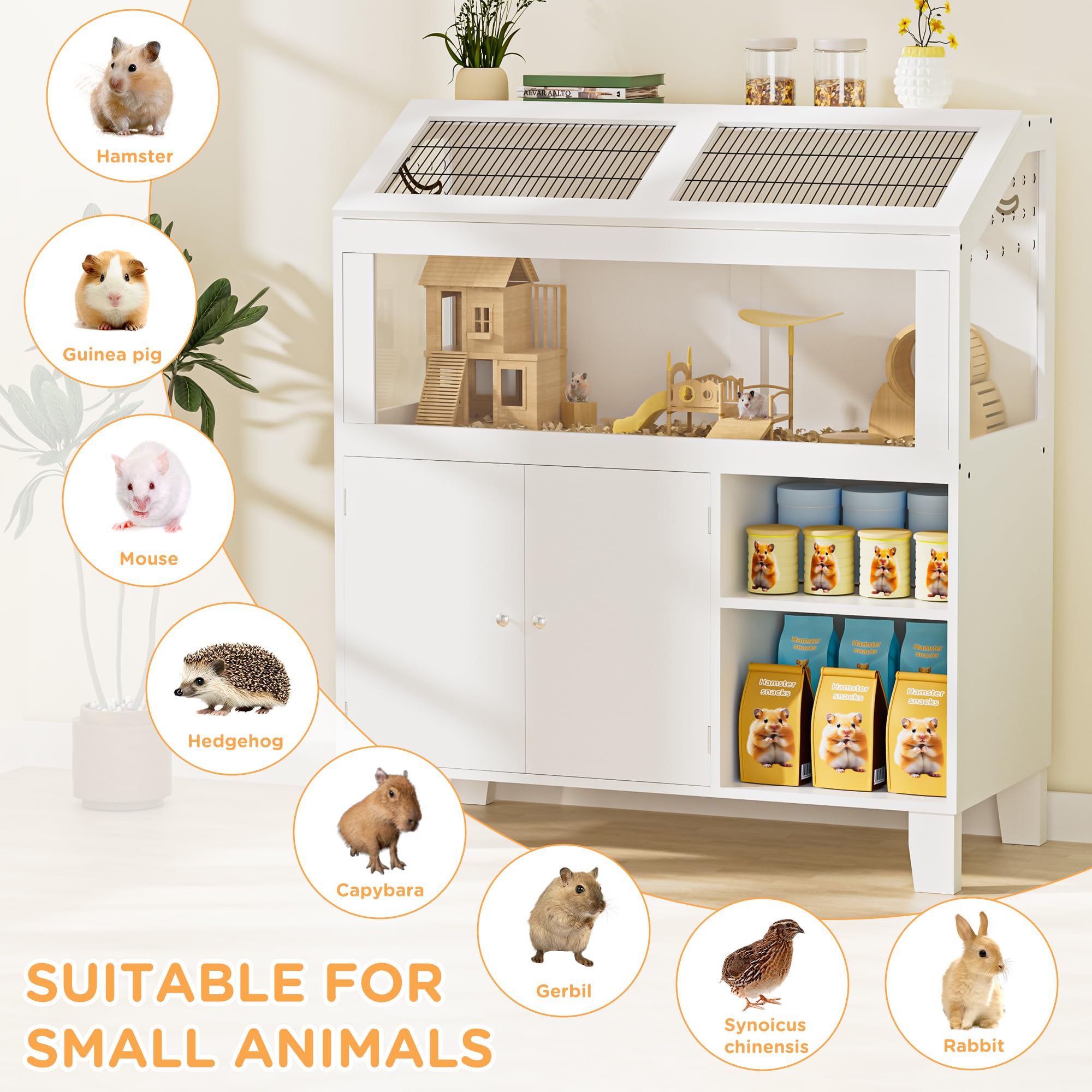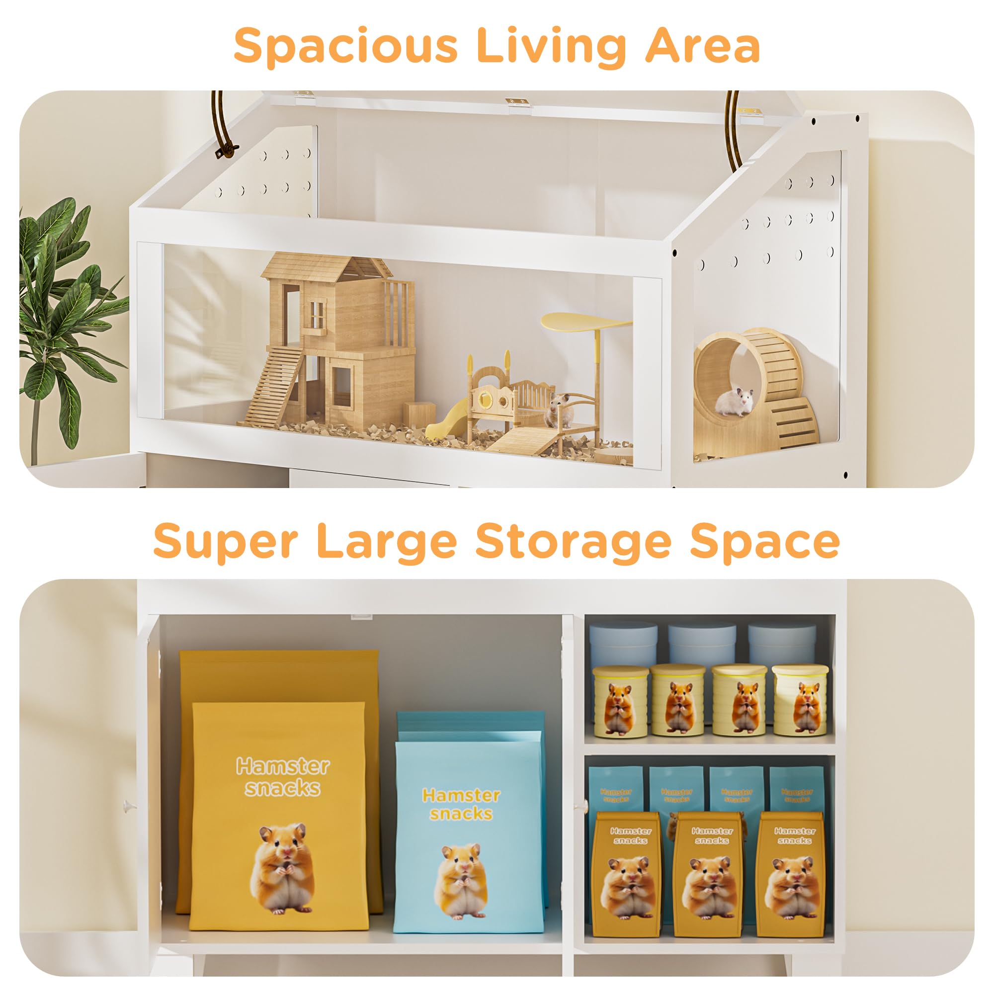 Hamster Cage with Storage Cabinet: Our hamster enclosure features a spacious bottom cabinet to store all your accessories and supplies. With adjustable shelves, you can easily customize the space to fit your items, keeping everything organized and within reach