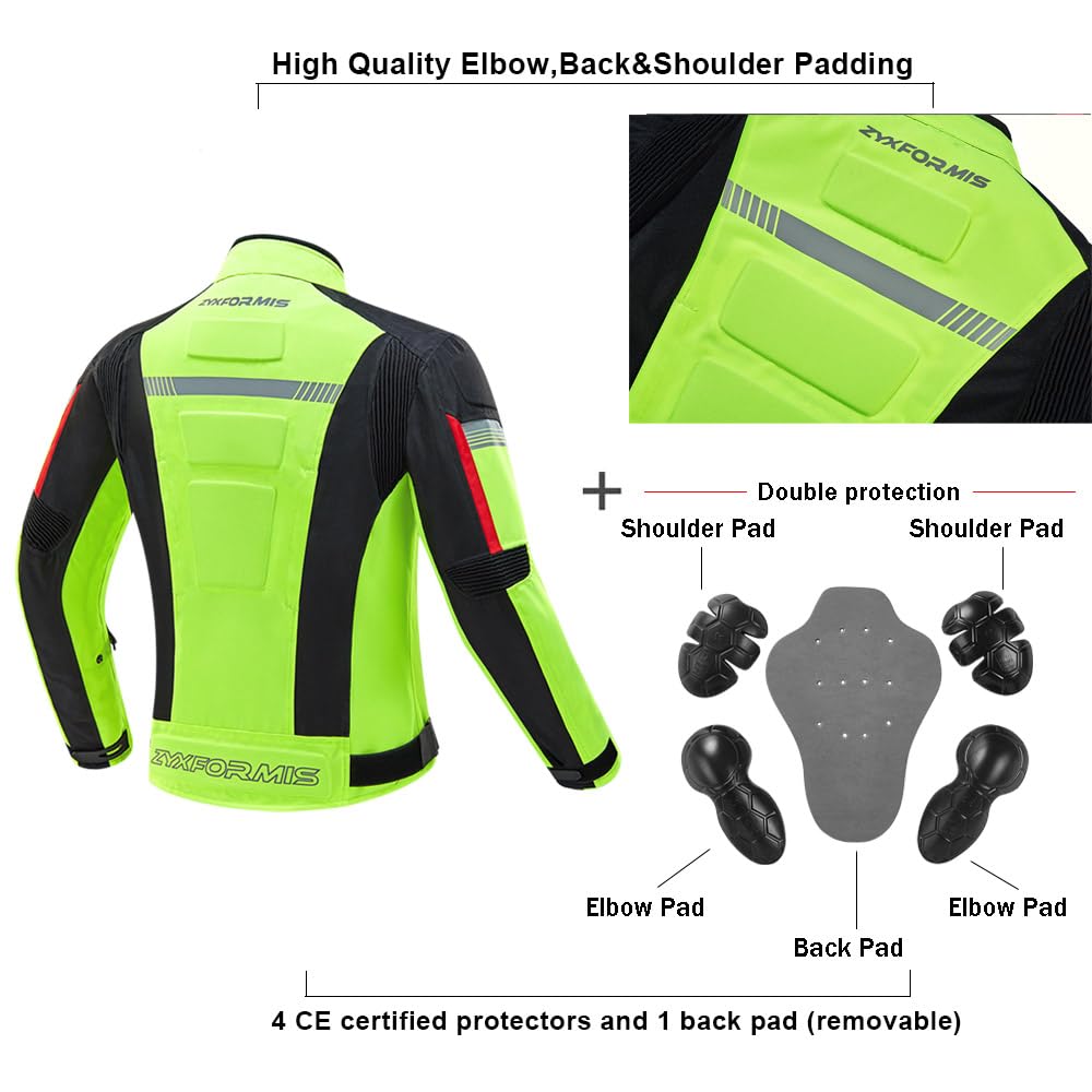 Night Reflective Design: Jacket with high visibility reflective stripe on front, back and arms. Improved safety riding at night. Reduce the risk of motorcycle riding in the night