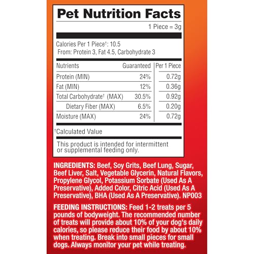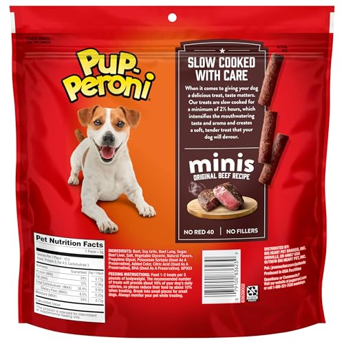 Pup-Peroni Minis Original Beef Recipe dog treats offer big, beefy flavor your dog will love. Real beef is the number one ingredient, so your dog gets delicious, high-quality protein in every bite. And in case that’s not enough to get your pup pumped — each treat is slow cooked for at least 2.5 hours, which helps retain moisture and intensifies the taste and aroma. The result is an irresistibly rich, meaty treat with a soft, tender texture dogs can sink their teeth into. It’s everything your dog wants in a treat … and yet, nothing you don’t. No fillers. No Red 40. Just the crazy-good soft dog treats your dog craves. So, pick up a bag and treat ’em more often!