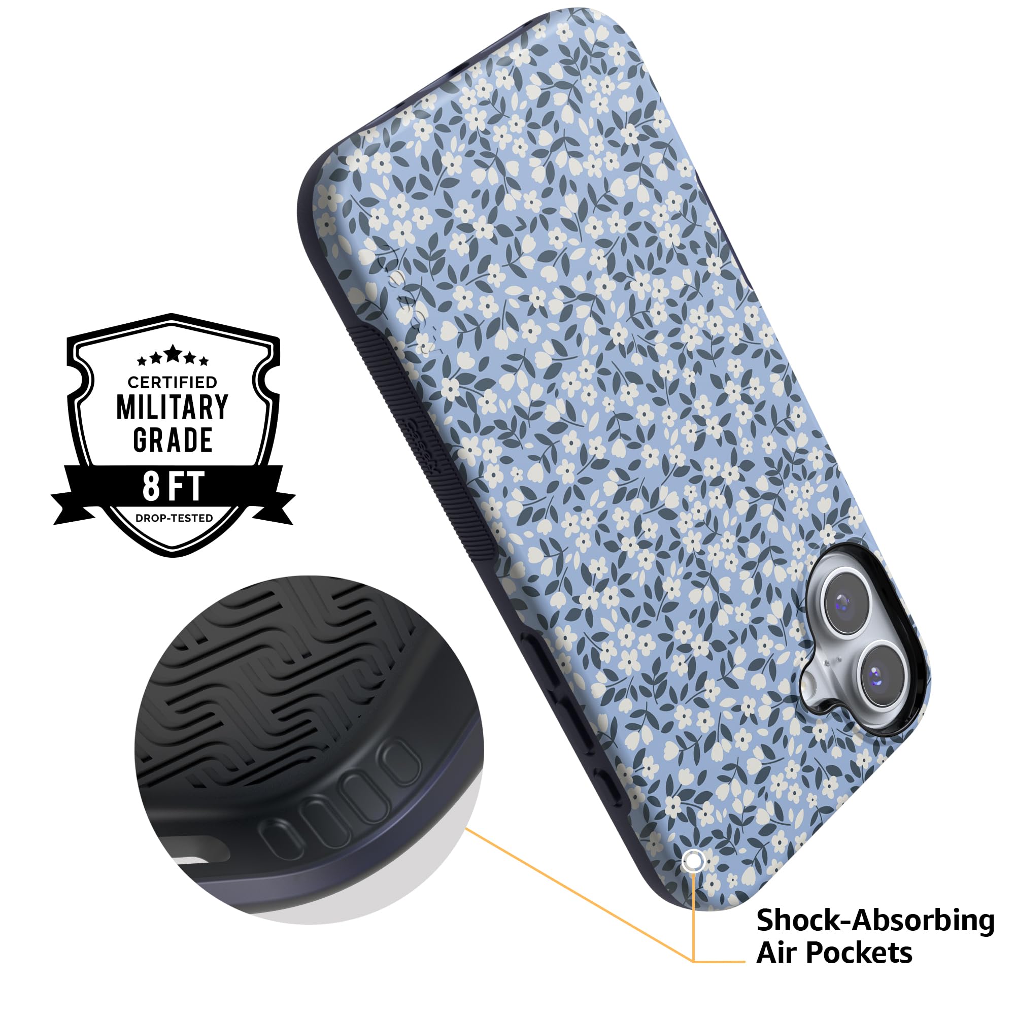 Sometimes, there's just no beating a pattern that's both tasteful and classic. That's exactly what our Picking Daisies | Cottagecore Case provides. This design is a little more subtle than others but it's still a perfect addition to any aesthetic. The dainty white flowers pop against the pale blue background, resulting in a design that's both complementary and versatile. Like all of Casely's phone cases, this phone case is made from high-quality protective materials. You carry your phone with you everywhere, so why not make sure the design on your phone case matches your style? This delightful floral phone case is the perfect addition to your cottagecore aesthetic and is the perfect finishing touch to your cottagecore outfit or style. Give it a try today!
