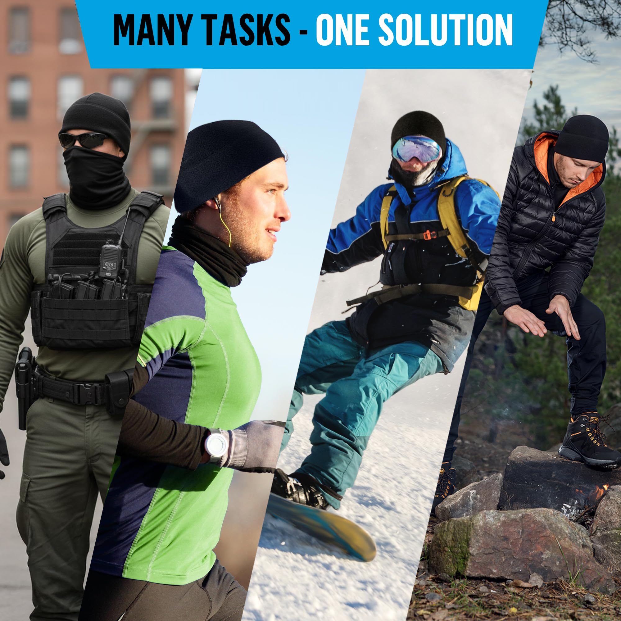 Versatile: These lightweight cold weather beanie hats for men work for ski helmet liner, police beanie for men, cycling, skiing, snowboarding, paintball, hiking, fishing, running, camping, and more