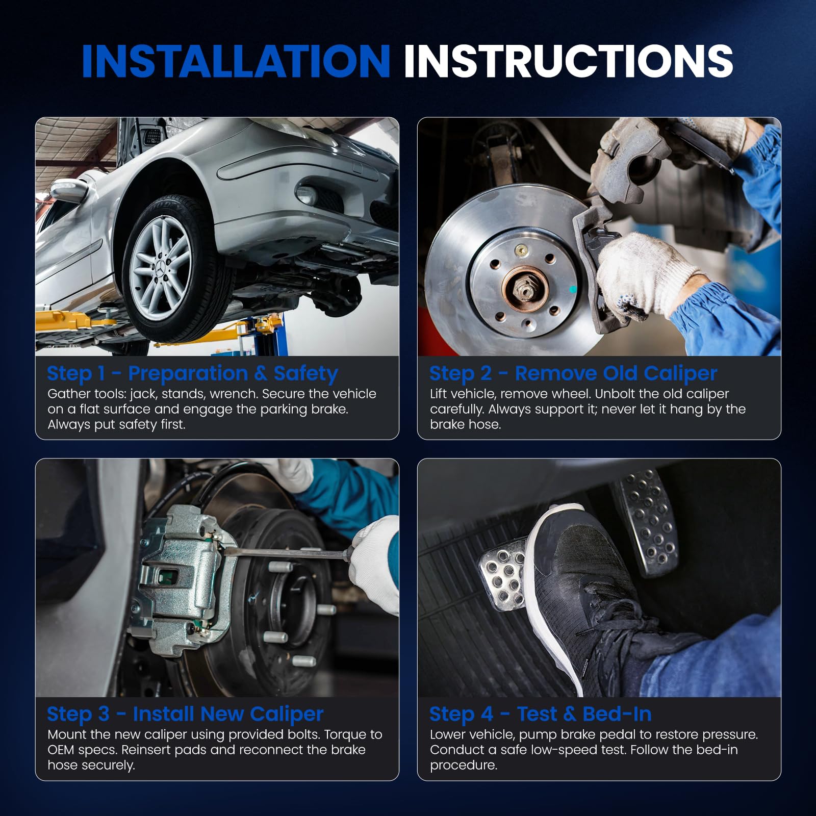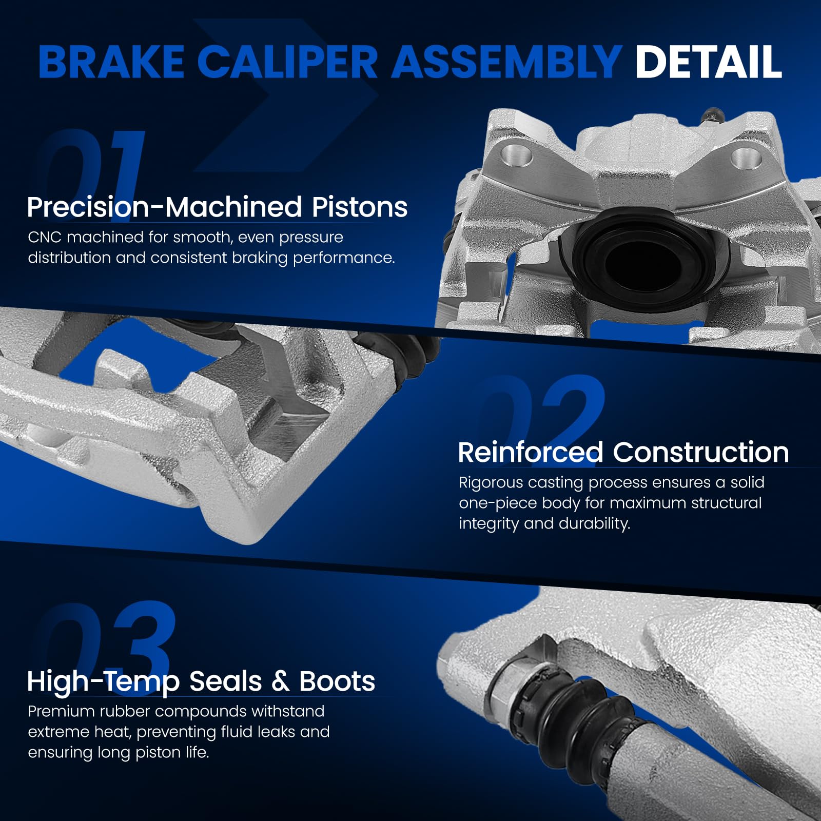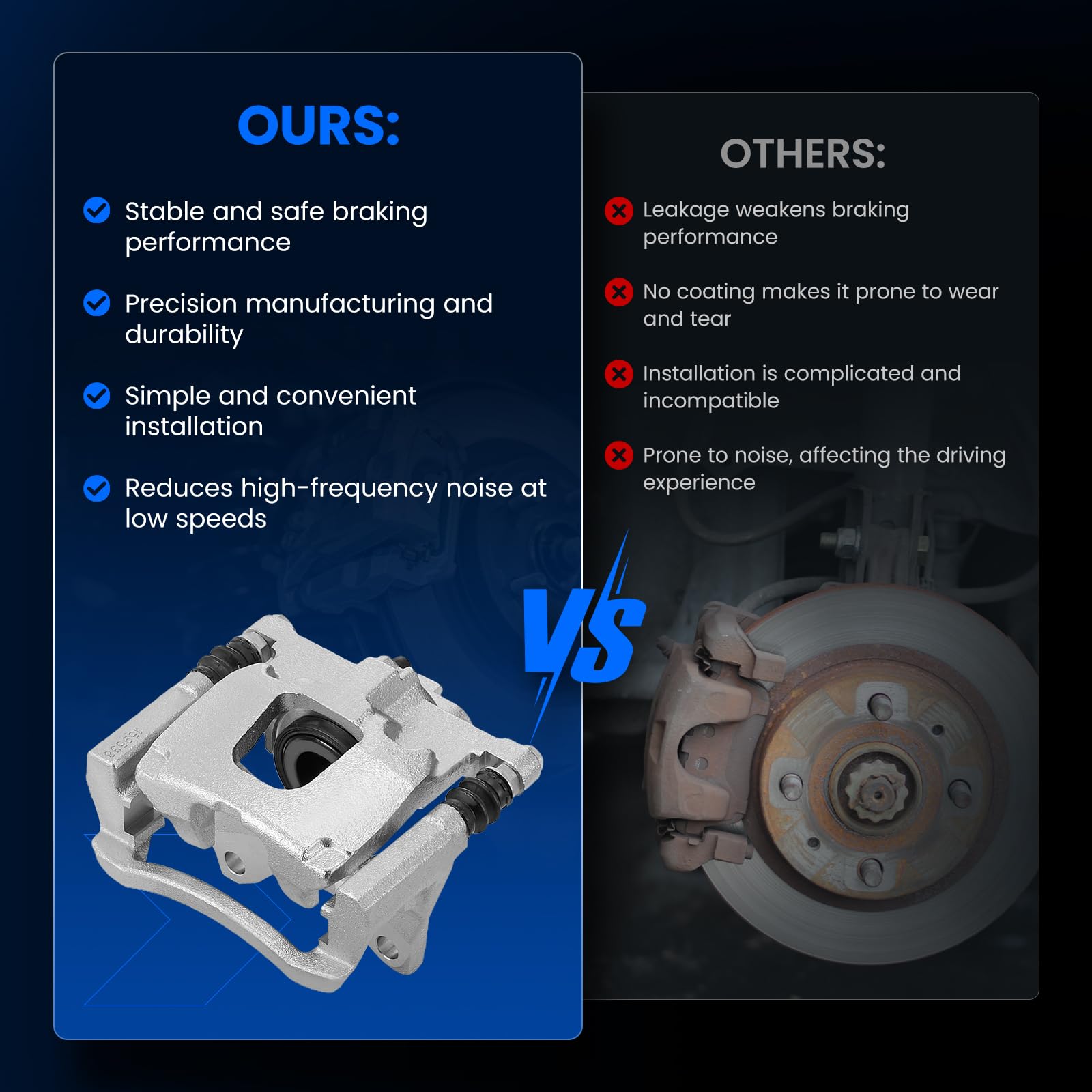 [ Outstanding Braking Performance ] - SYKRSS Brake Caliper Assembly is made of high-quality cast aluminum alloy materials and features anti-corrosion processes. It not only offers lasting reliability and durability but also provides outstanding braking performance, providing you with a quiet and comfortable driving experience.