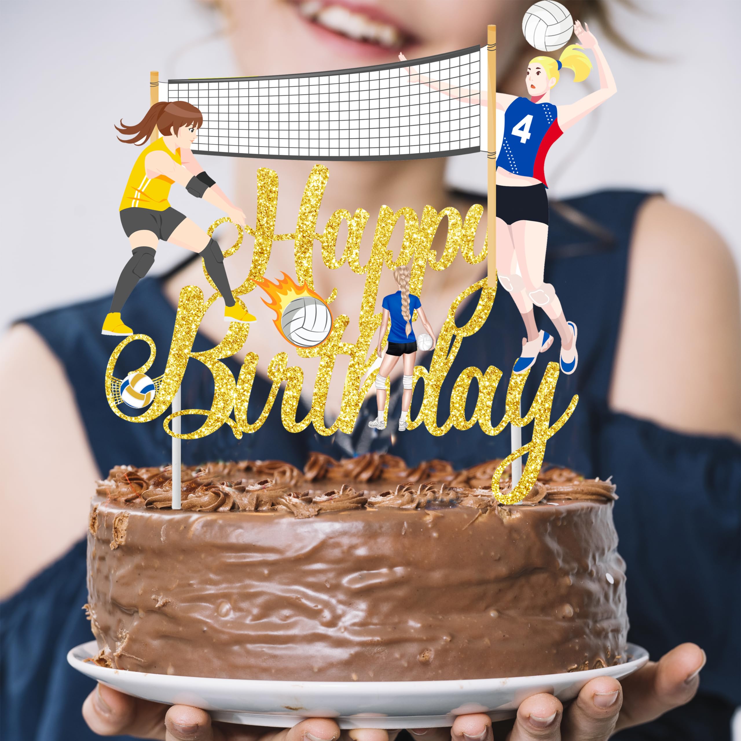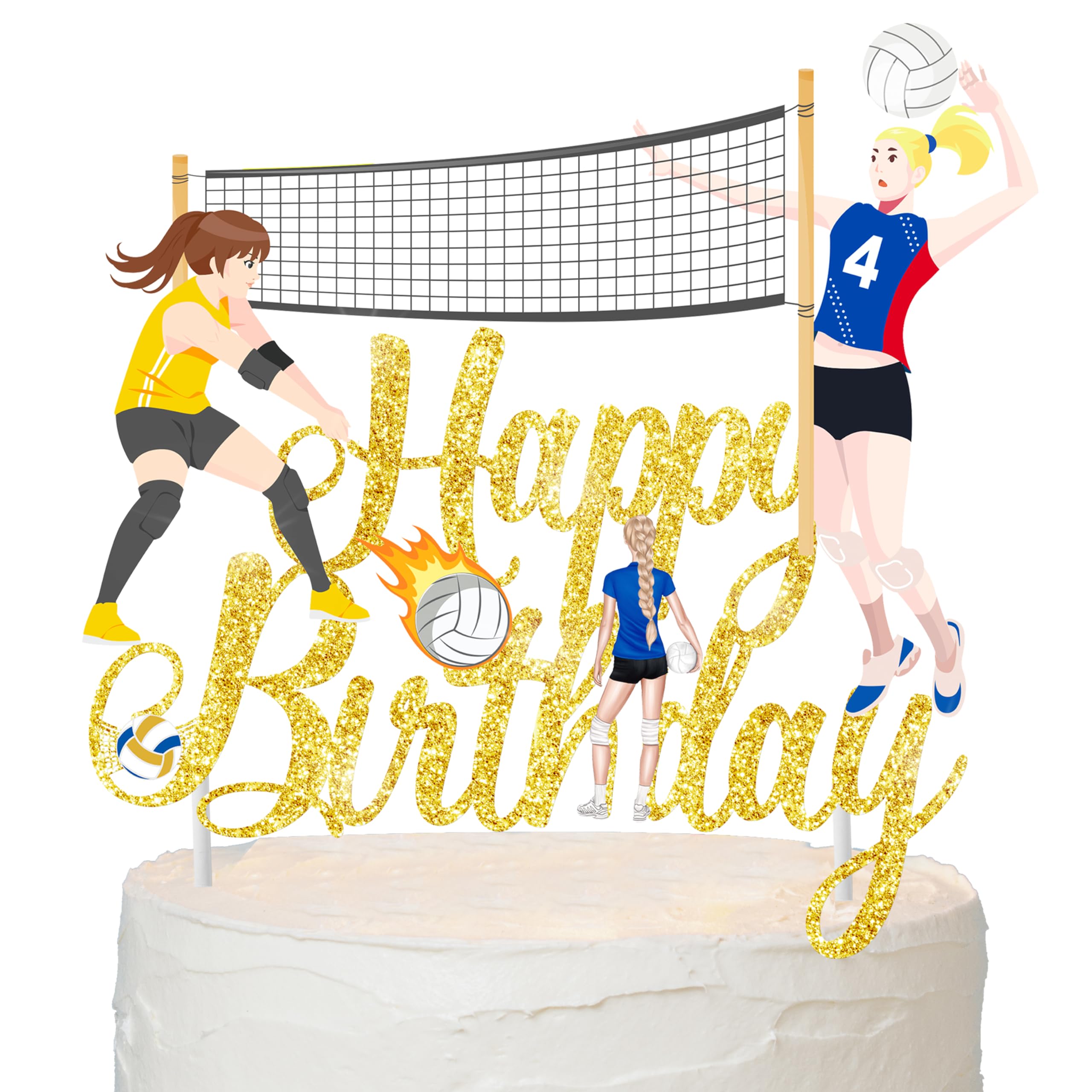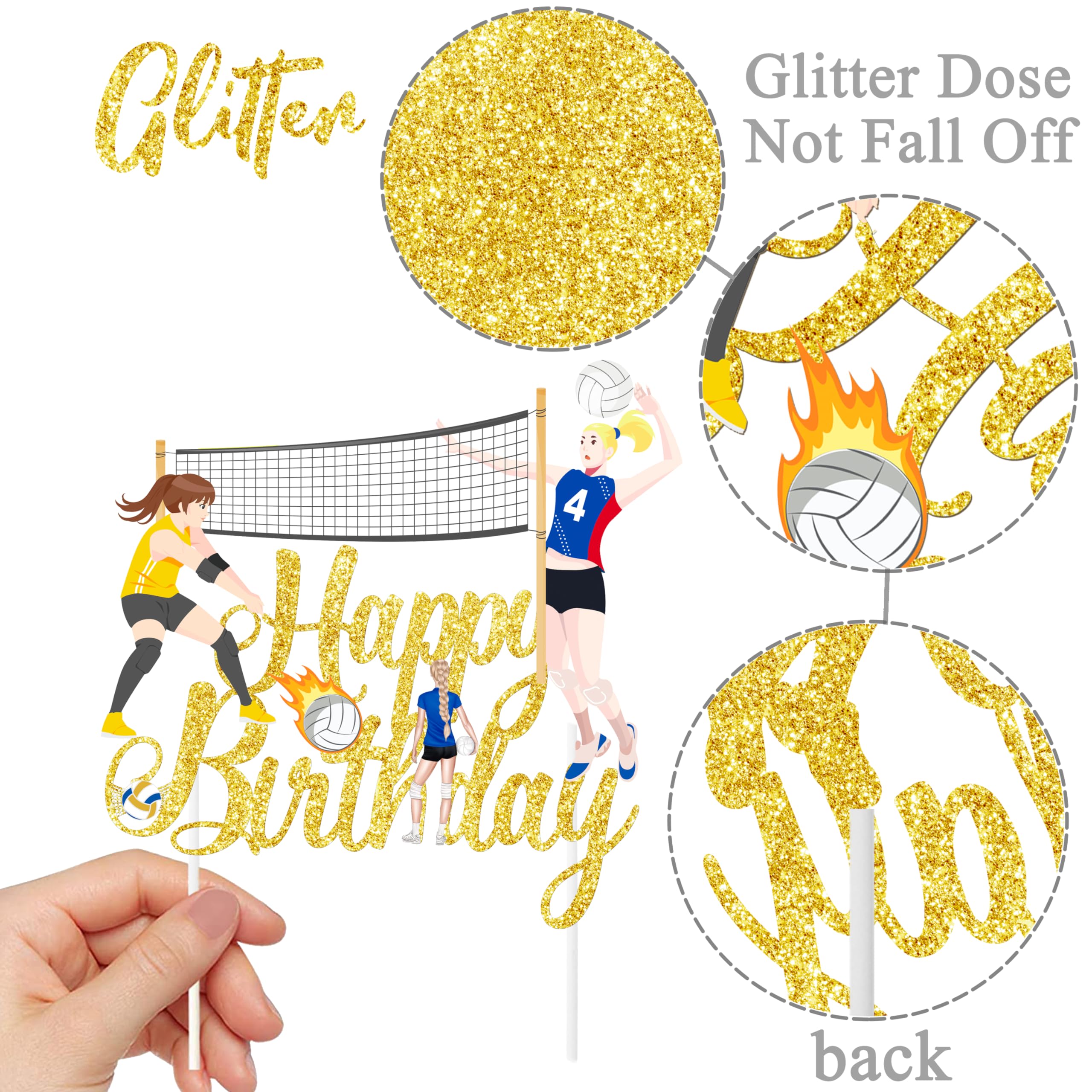 ❤【Golden volleyball happy birthday cake topper】1pcs volleyball cake topper is printed with gloden happy birthday sign. Sparkling volleyball birthday cake topper can make your birthday cake more dazzling, not only full of surprises, but also bring good wishes.