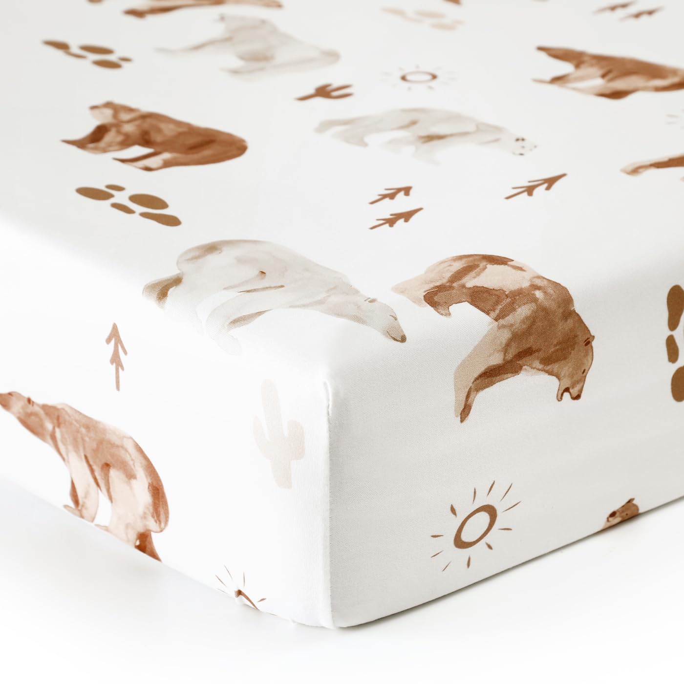 Stretchy Ultra Soft Jersey Knit Fitted Crib Sheets Set 2 Pack,Universal Fit All Standard Crib Mattress Pads Safe and Snug, Crib Fitted Sheet for Boys and Girls, Cute Animals Print